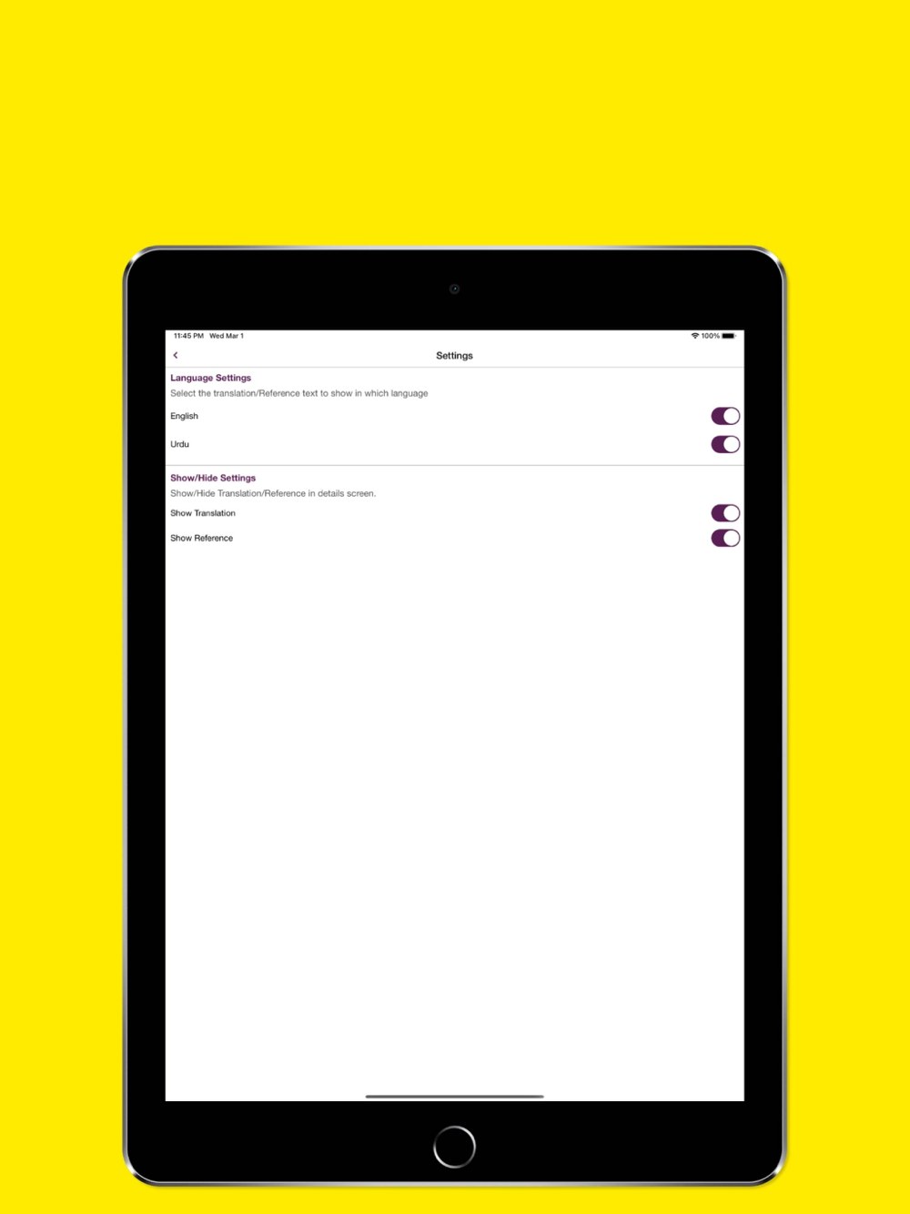 Languages :-Translation: Includes the English & Urdu translation of all Azkar and Quranic verses (Quranic verses based on Sahih International translation).