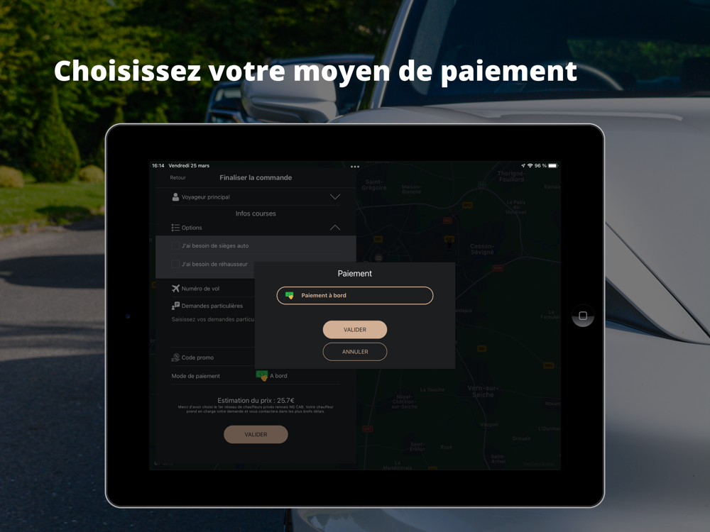Rien de plus simple que de réserver un trajet à l’avance. Renseignez votre lieu de départ et votre destination, puis précisez la date et l’heure à laquelle vous souhaitez effectuer le trajet. En quelques clics, votre trajet est validé et vous êtes sûrs d’avoir un chauffeur privé disponible au moment voulu !