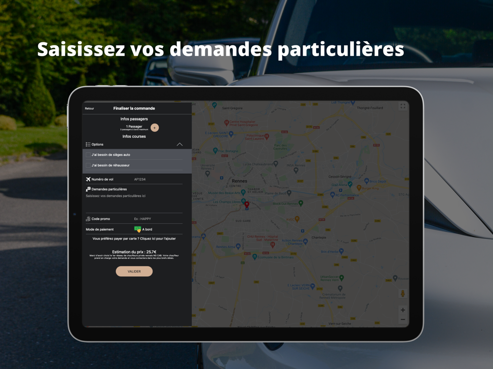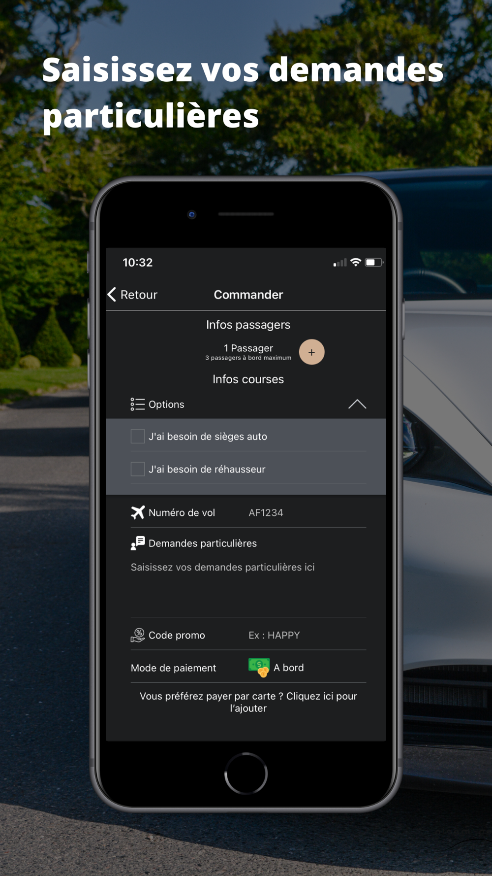 Pour les transferts gare ou aéroport, pensez à nous communiquer votre numéro de train ou de vol : le chauffeur privé ajustera son arrivée en cas de retard !