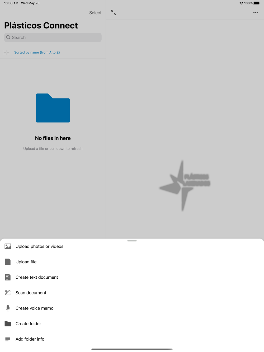 O aplicativo da Plásticos Connect para iOS permite que você acesse todos os seus arquivos.