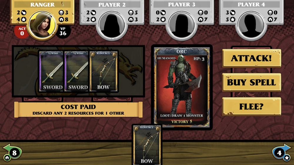 This digital version is optimized for solo play against 3 AI opponents. It includes all twelve characters from the original game, plus three additional: the Builder, the Dragon Slayer, and the Merchant. Each AI has their own tactics and strategies created by Jimmy Sanders, game designer of the original physical board game released in 2016.