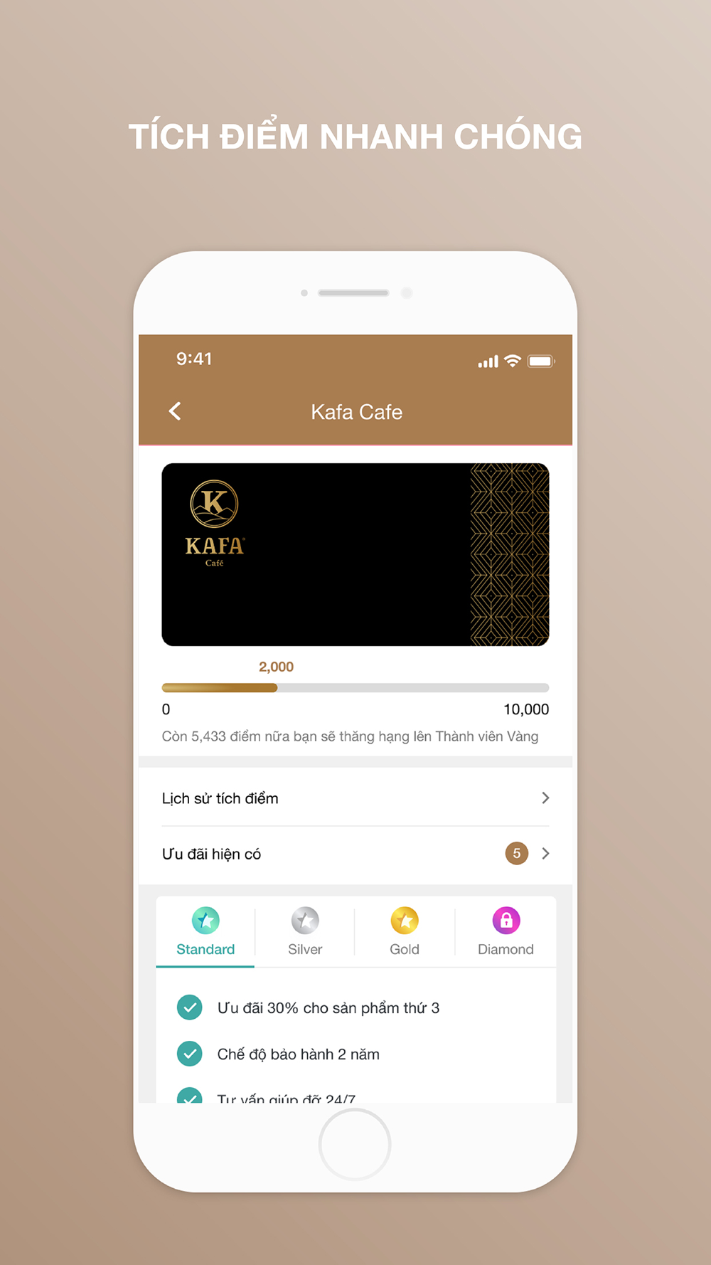 Ứng dụng Kafa Café mang đến những tính năng chăm sóc khách hàng đặc biệt như dịch vụ tích điểm, chương trình ưu đãi dành cho thành viên; nơi bạn có thể tìm kiếm tất cả các thông tin và cập nhật những tin tức mới nhất về chuỗi Kafa Café trên toàn quốc.
