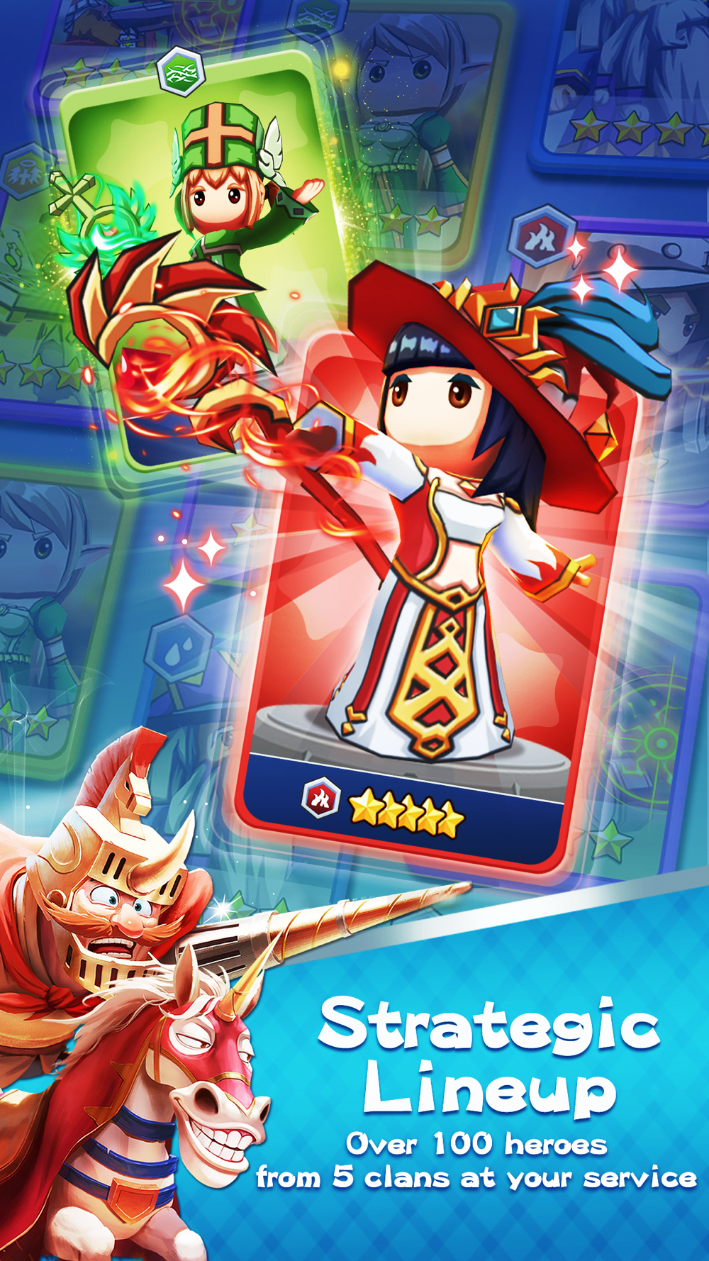 Deploy heroes of different clans and skills properly, slay enemies effortlessly and challenge world-wide real live players in the PVP Arena!