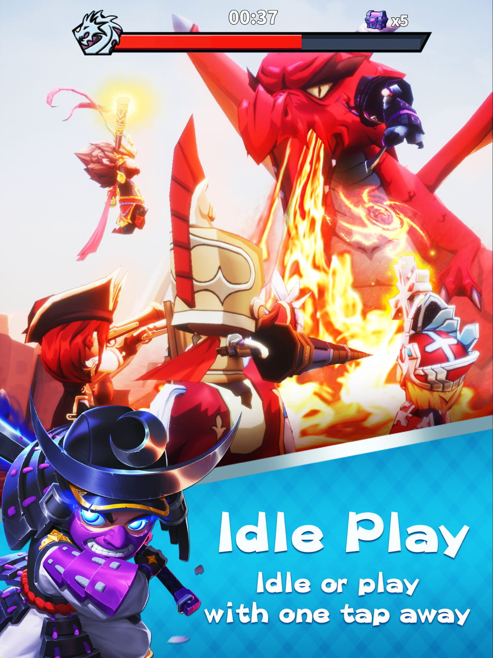 All you need to do is sparing one finger to help your heroes when they're in trouble. You can either fight with your team when you're free or let your team fight for you when you're AFK, while earning loots all the time.