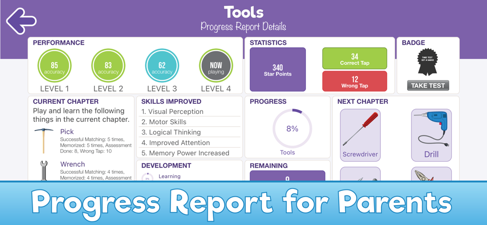 # Detailed Progress Report: Detailed progress report for parents to help track your child’s development.