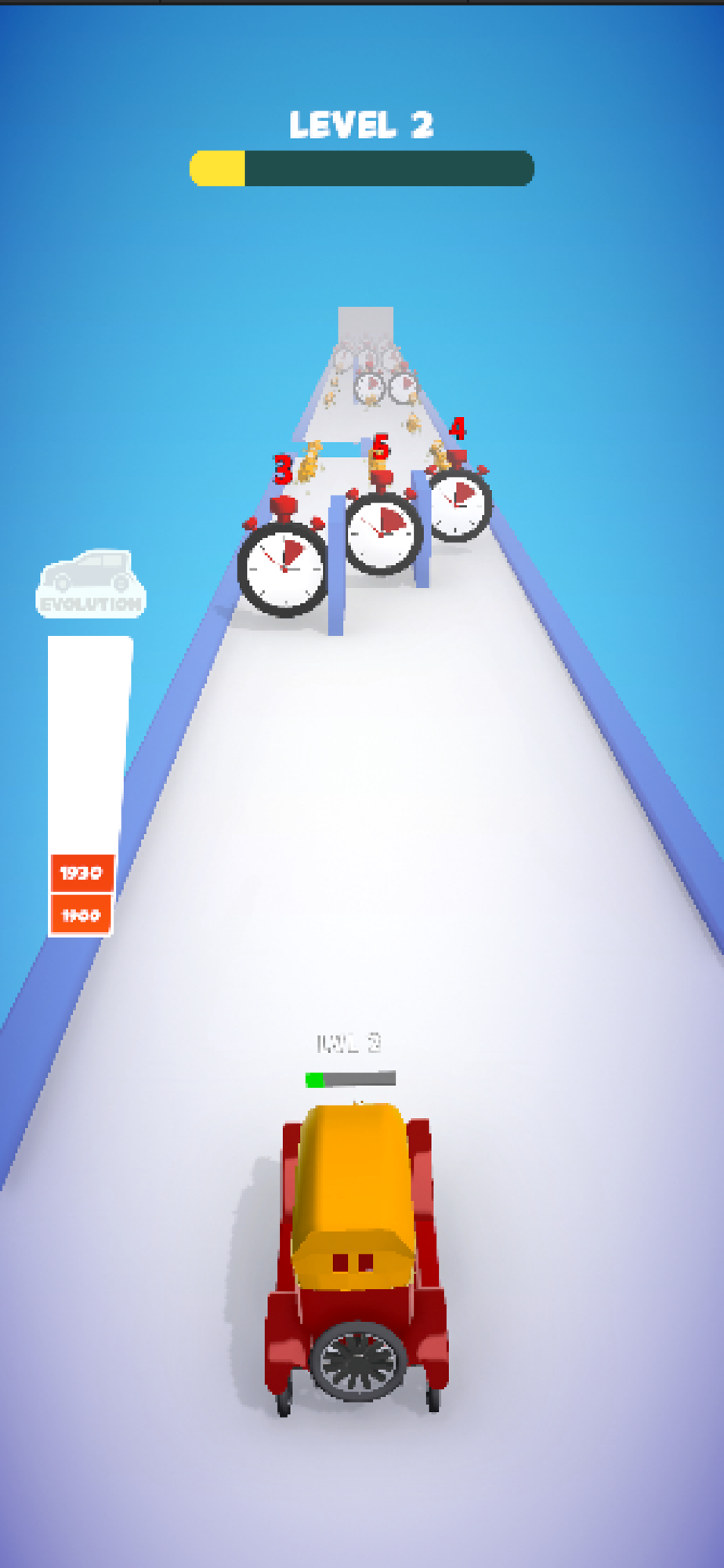 Watch the evolution of cars step by step. The years go by fast and the cars speed up