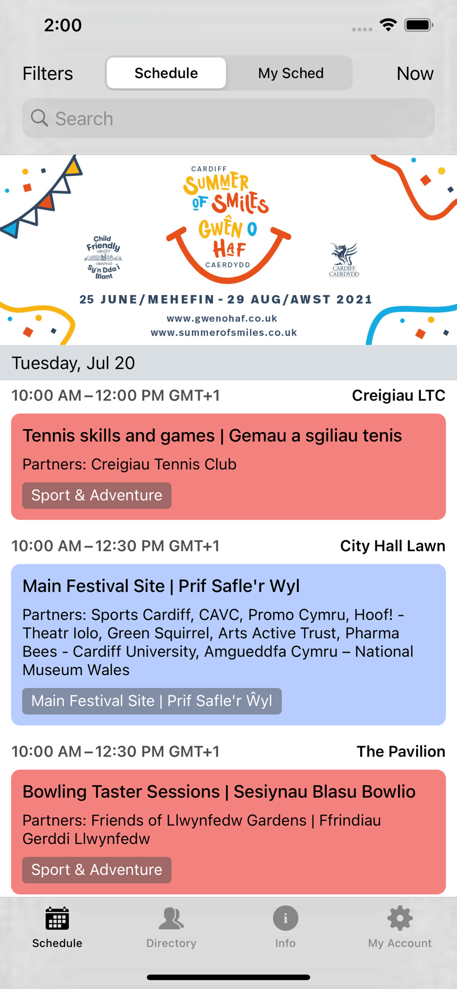 Conveniently browse the entire schedule for Summer of Smiles | Gwên o Haf. Get the key information of your event without ever having to crack open an event guide.
