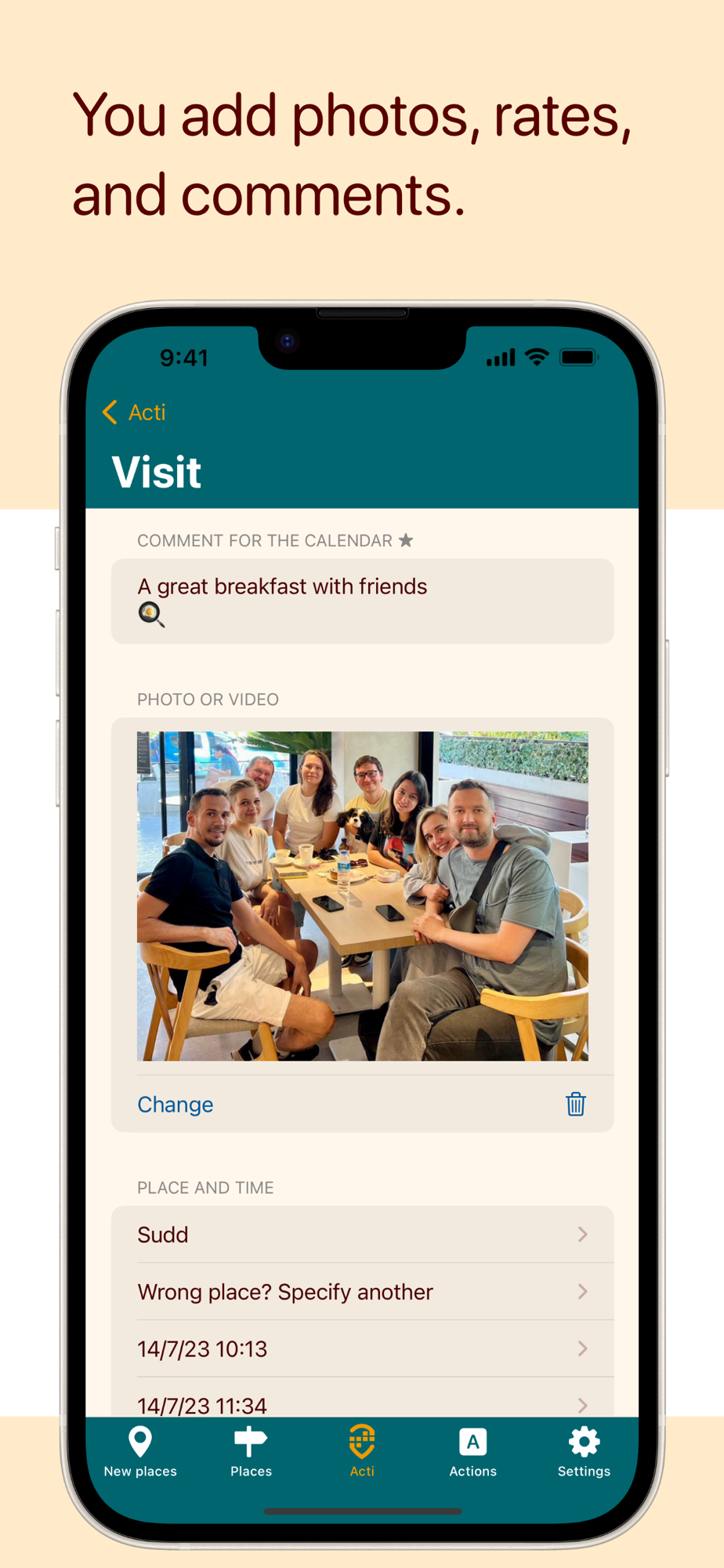 Inside Acti's internal calendar, you can view your visits by day, week, month, or year and get summaries based on visits, places, and categories.