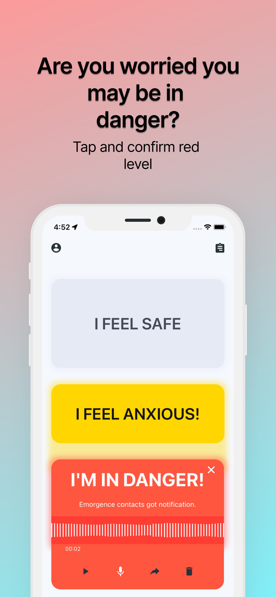 Everyone needs emergency contacts. We recommend names and mobile numbers of at least 1 family member, 1 friend and 1 neighbor. Then, if you’re in possible danger, change a "Levels of Emergency". Zinno ICE will send messages to your pre-set emergency contacts to let them know your situation and your location.