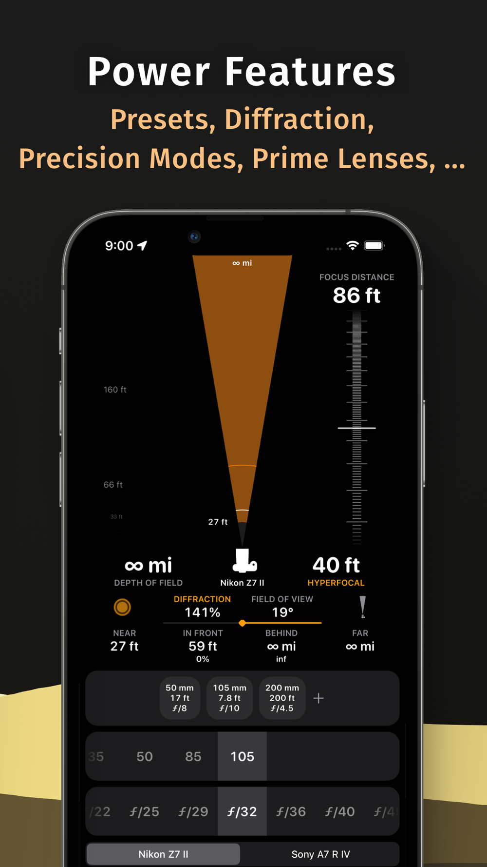 light&depth’s interface was designed to bring you all the information you need, as quickly and intuitively as possible. After all, we want you to focus on your photography, not on entering values and performing calculations in your head.