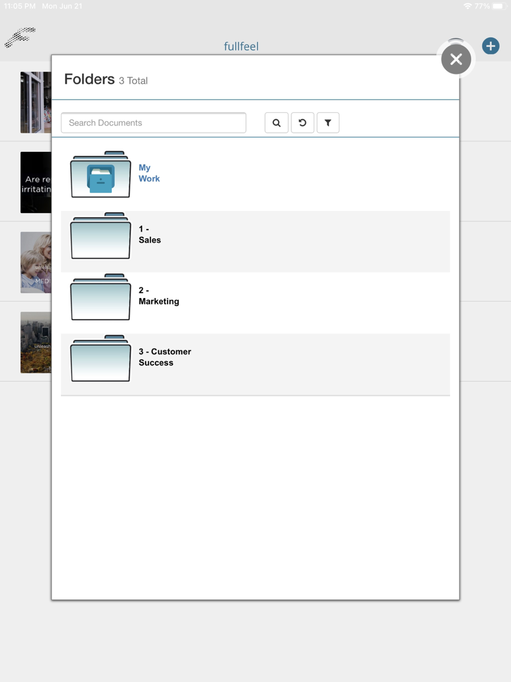 fullfeel allows you to present presentations with or without access to internet. Just click on the content icon and start presenting instantaneously. It is that simple.