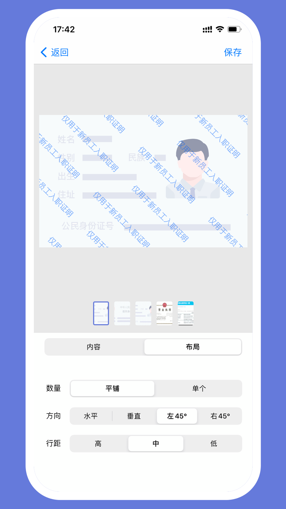 证件水印王是一款为照片、证件等添加平铺文字水印的工具,帮助您保护证件照等隐私不被盗用。