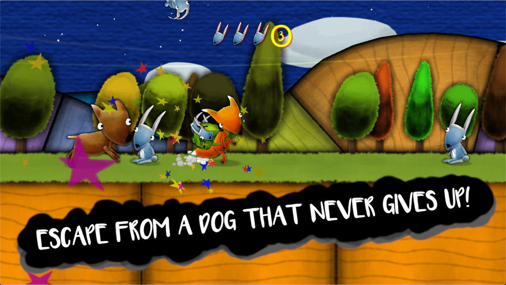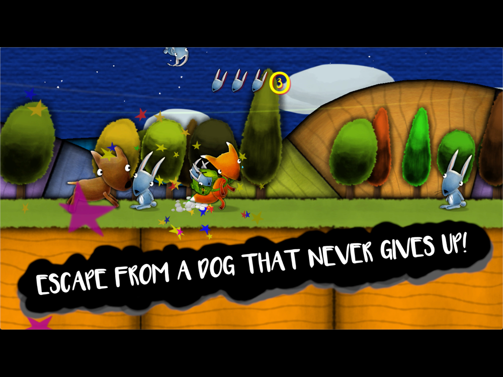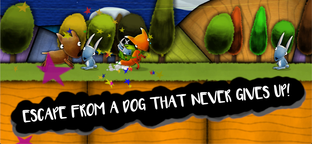 Prepare yourself for a one-of-its-kind infinite runner game. Your task is to outrun a stubborn dog that you awakened when walking in a farm in search of something good to eat. You can resist anything but temptation: avoid the bunnies, they are so tasty, but also heavy...they will slow you down and let you Out of Breath!