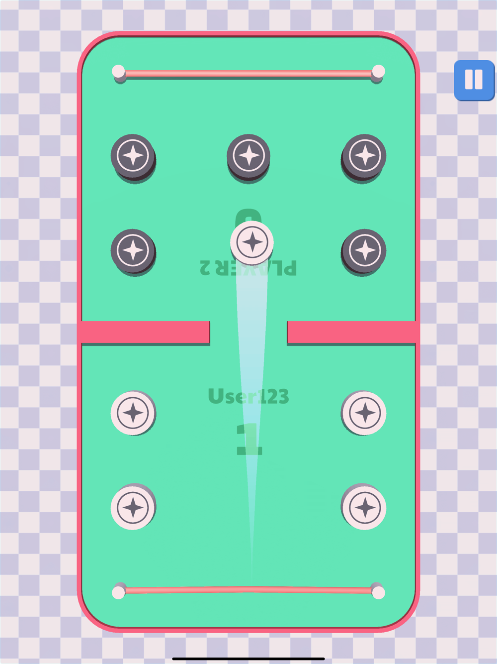 Drag and sling your pucks and shoot towards opponent area as fast as you can. Your goal is to make your area empty before opponent. Play with your friends and family members on your device to get real time quick fun. If you are alone, then play against BOT for quick fun. Welcome to the quick battle game of pucks.