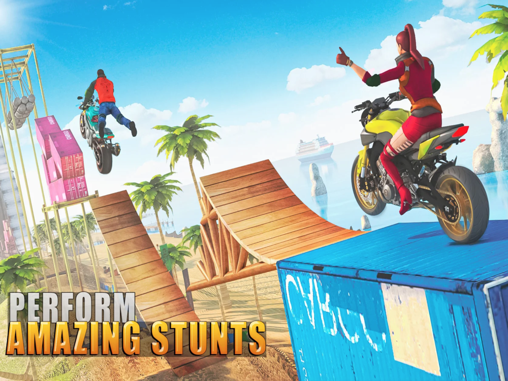 Face Challenges As a bike stunt racing game trickly master rider, you must be careful on mega ramps, because your rider is much faster than any other traffic rider and bike stunt racer. Keep in much that you should not crush any bike or motorcycles. All the bikers and fast-paced furious racers get ready to test your driving, stunt, racing, fighting &. Racing games carry multiple levels from easy trials to the path of perseverance. Are you a fan of free bike stunt games? stunts skills against the most dangerous & brutal bike drivers & racers around as here you would be on the mega ramp, the most brutal ramp with heavy bikes & driving at really fast speed. Drive, race & fight around the mega ramp city to prove that you are the best bike driver & racer.