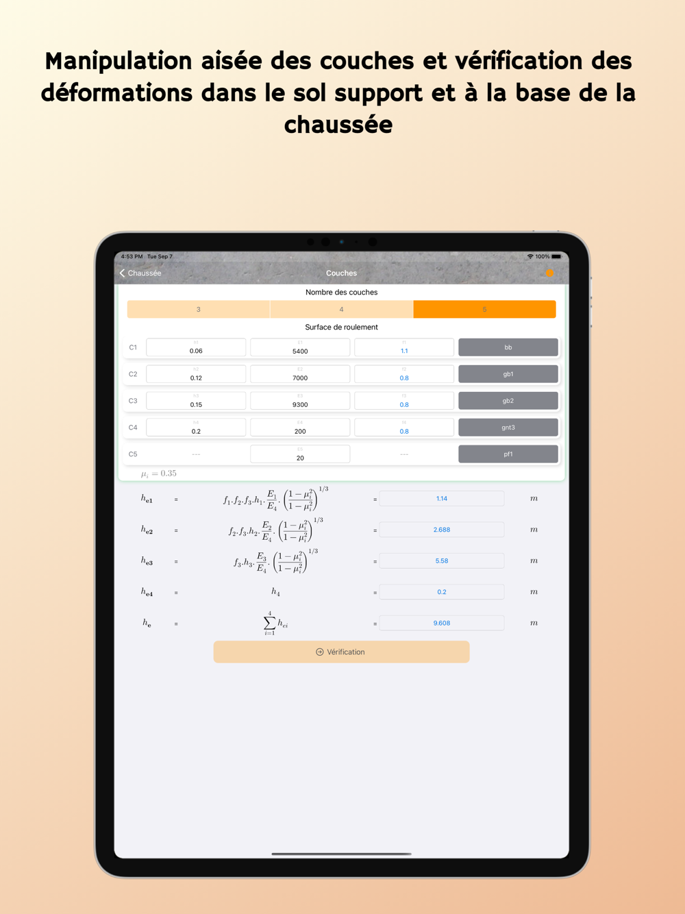 The application "Construction ADERA", proposes technical modules, allowing a fast pre-dimensioning (in 3 clicks) of the works divided into simple elements.