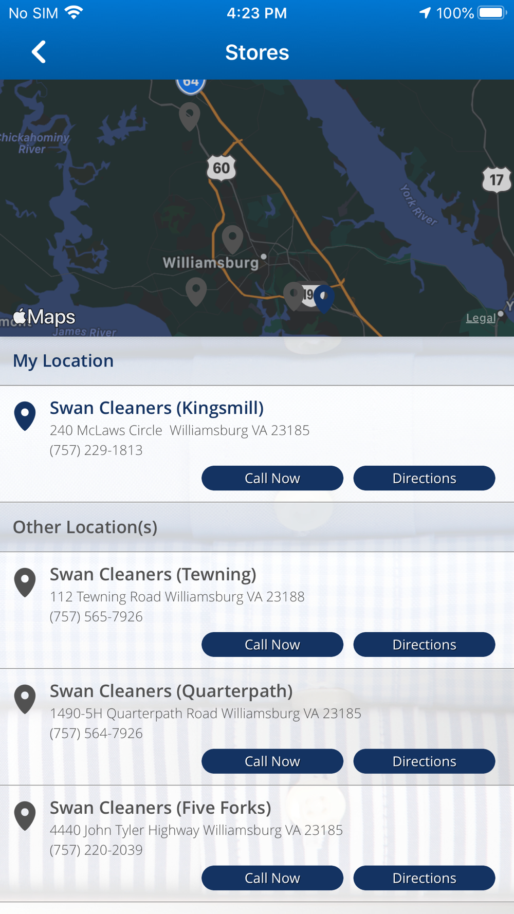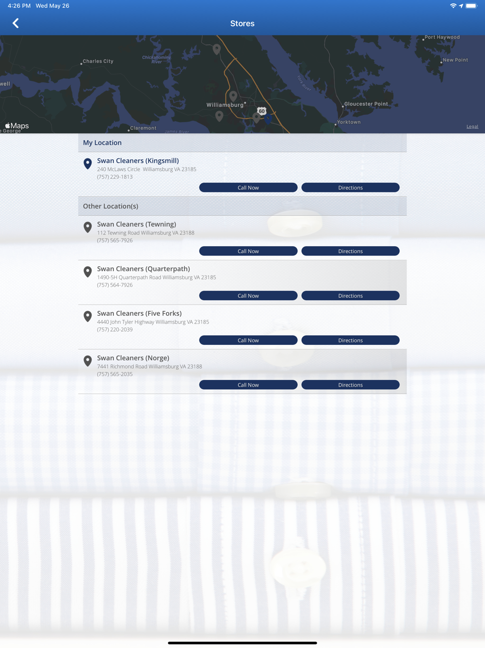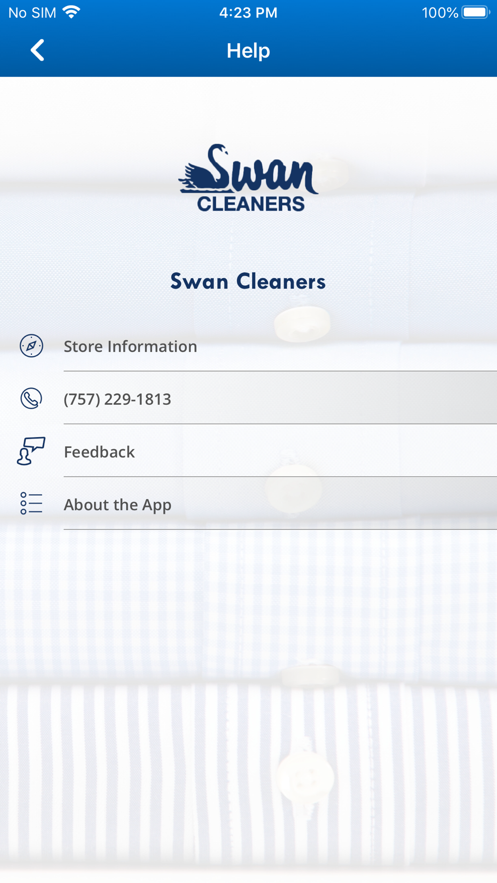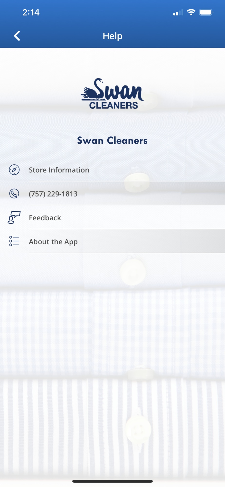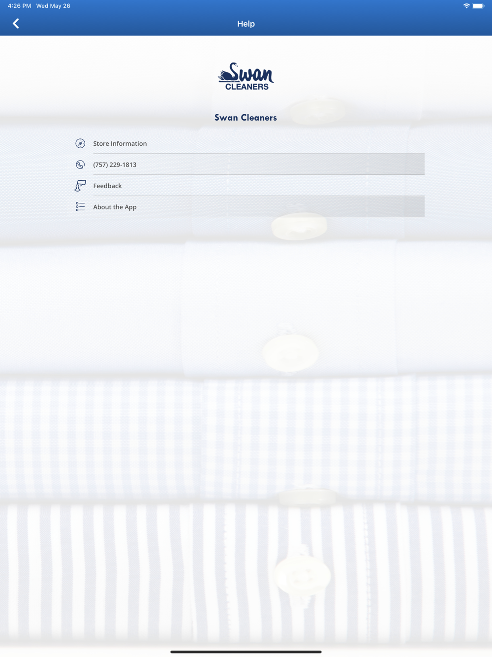 5) Quickly contact Swan Cleaners by phone or email and access their website all directly from your device.