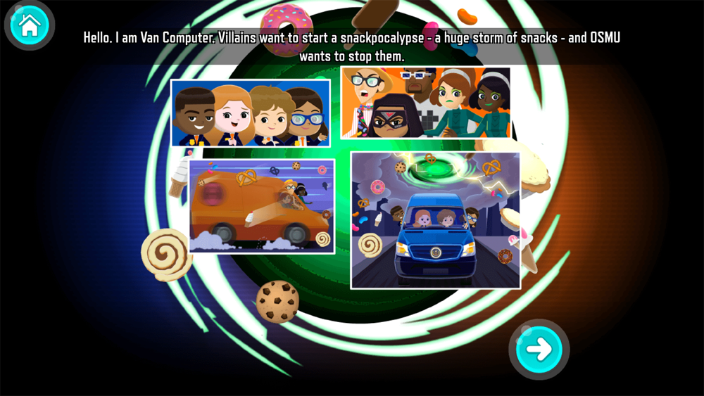 It's a Snackpocalypse! Artifact Adventure introduces you to the basics of computer-programming. Odd Squad – the hit TV show for kids ages 5-8 – and the Villains are competing to collect pieces of an ancient artifact; if the Villains assemble the artifact first they can unleash a Snackpocalypse – a huge storm of snacks. If Odd Squad assembles the artifact first they can stop the Snackpocalypse. Guiding the OSMU and Villain vans over cool map grids – the ruins of an ancient Odd Squad office, a very odd jungle, and a city overrun by giant snacks – you’ll place tiles in a path to tell the vans to go left, right, up or down. As the game goes on, new tools unlock, giving you the power to repeat your entire command line twice. You’ll plot paths around Bounce-traps and Cotton Candy Cyclones. Powerups let vans fly over certain obstacles and smash through them. With single- and dual-player modes Artifact Adventure is a fun and engaging entry to the world of programming, all set in the odd Odd Squad universe. And best of all, for the first time ever, you can play as either Odd Squad OR the Villains!