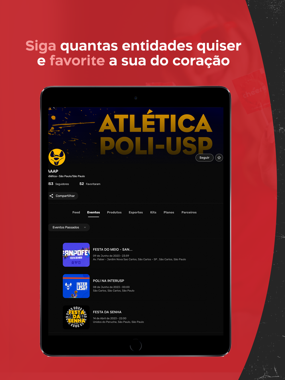 No Cheers App você terá a experiência completa de todas as entidades acadêmicas da América do Sul!
