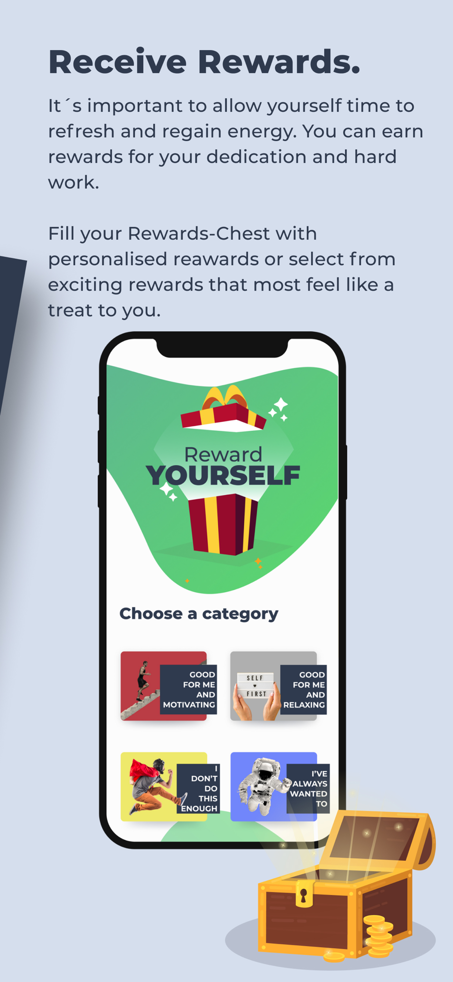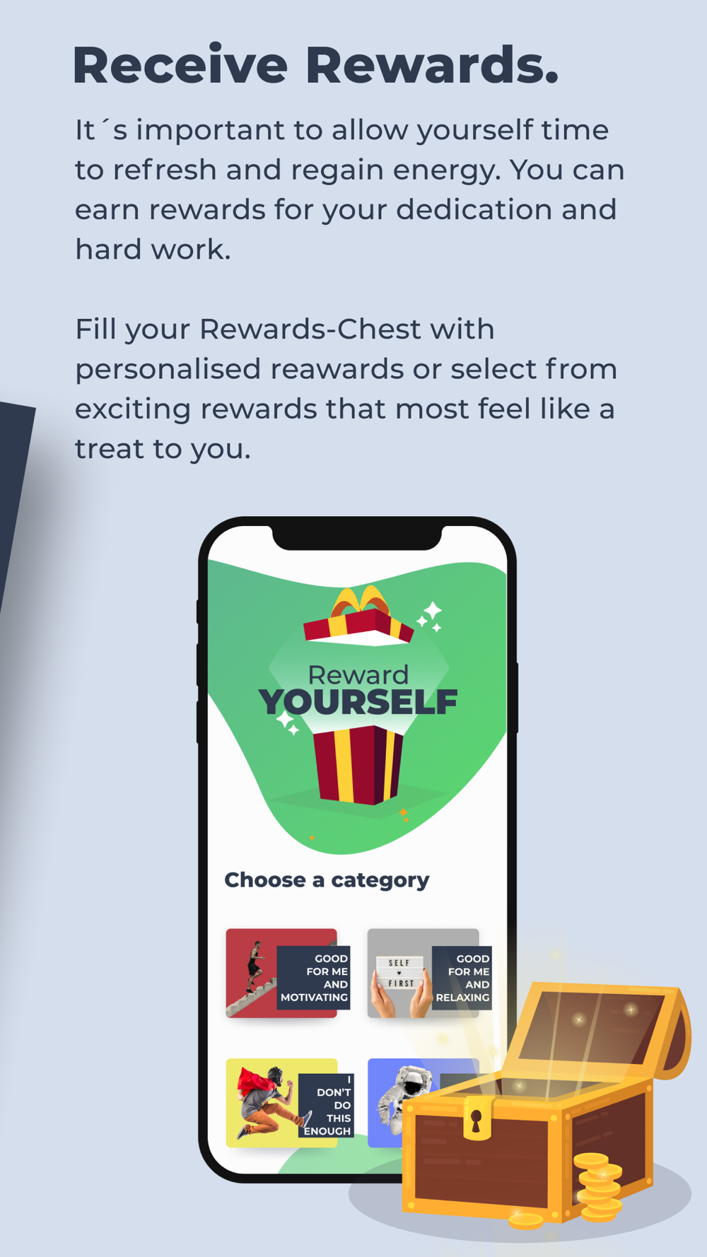 - Rewards - to refresh and reset: You know best what you love – by itching to earn rewards for your dedication and hard work, you can add personalized rewards into your Reward Chest! Or select from exciting rewards that most feel like a treat to you!