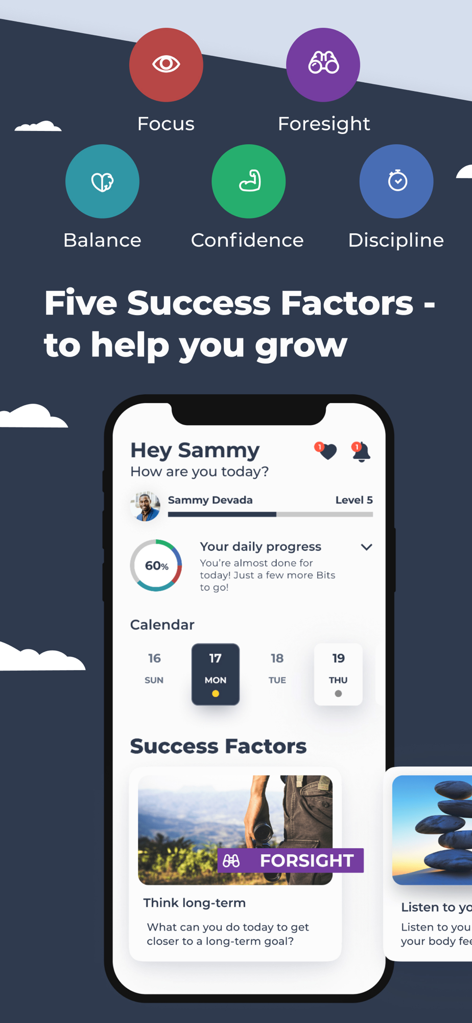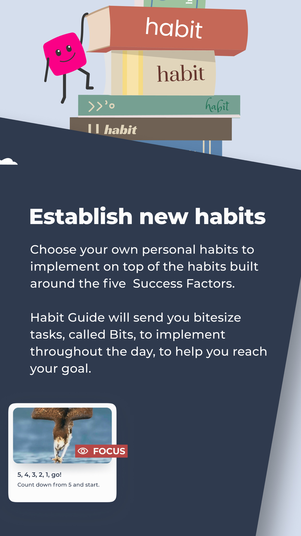 - Bits – little tasks to hat help you grow: Focusing on five Success Factors: Balance, Focus, Confidence, Discipline and Foresight, Habit Guide is a well-rounded app that doesn´t just focus on set outcomes: it asks you to reflect and work on yourself. Habit Guide will send you bitesize tasks, called Bits, to implement throughout your week. Every Bit will bring you a step closer to the goal,s you´ve set out for yourself.