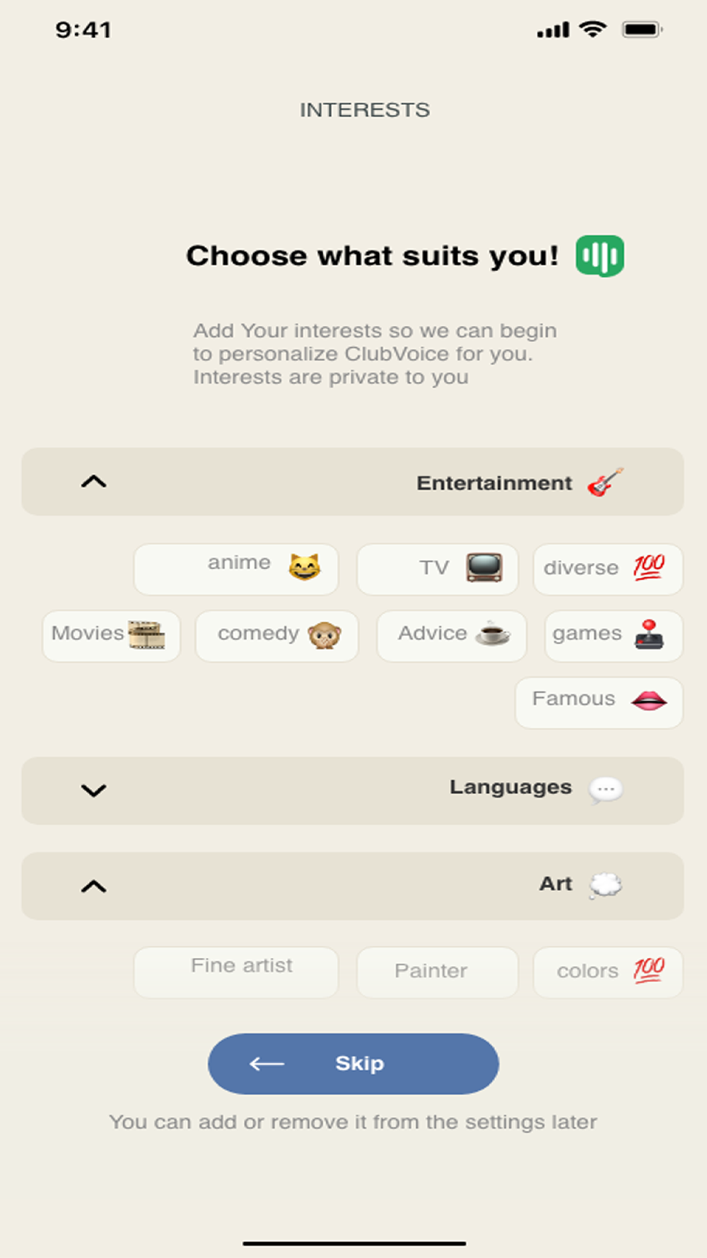 Club Voice is a space for voice chats - with friends and other interesting people around the world.