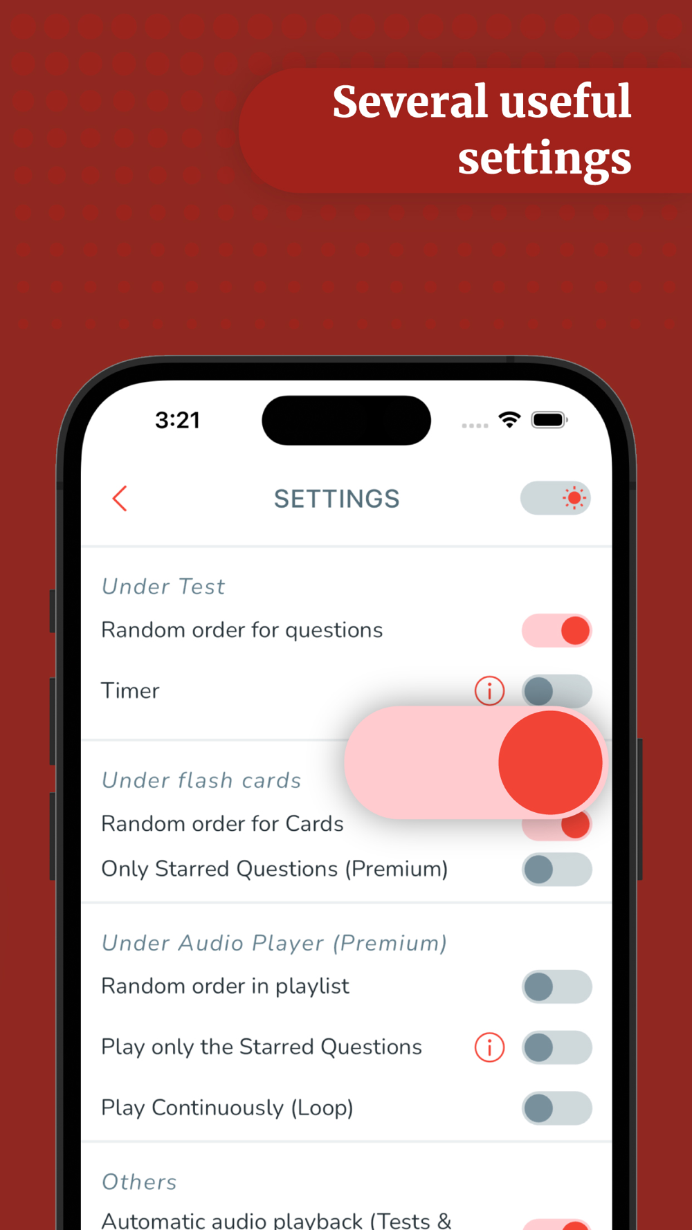 • Custom Tests: Create your own custom tests from favorite and missed questions.