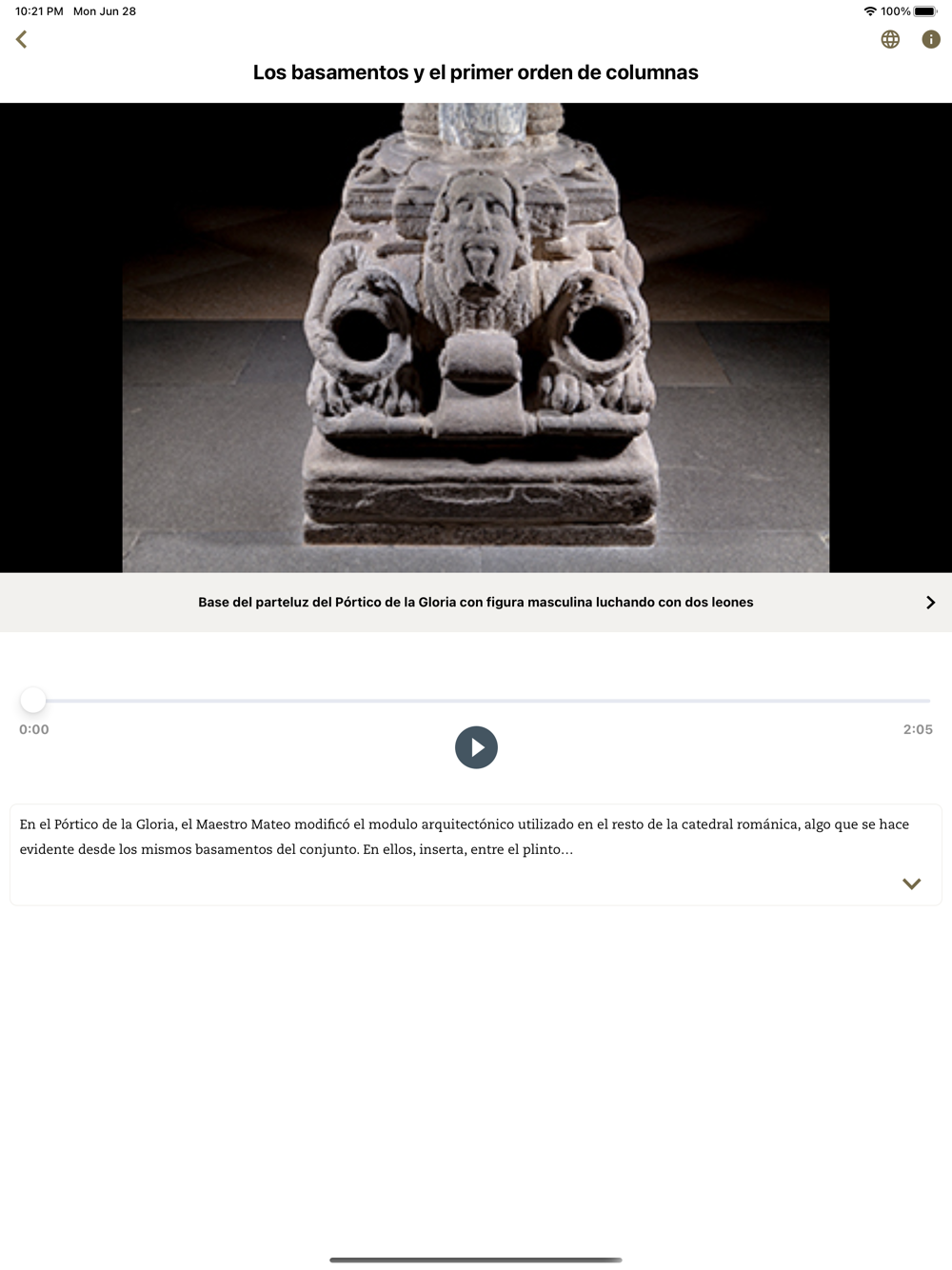 El acceso al contenido de la app permite seguir la visita gratuita al Pórtico de la Gloria y completar su experiencia ante esta obra cumbre del arte medieval.
