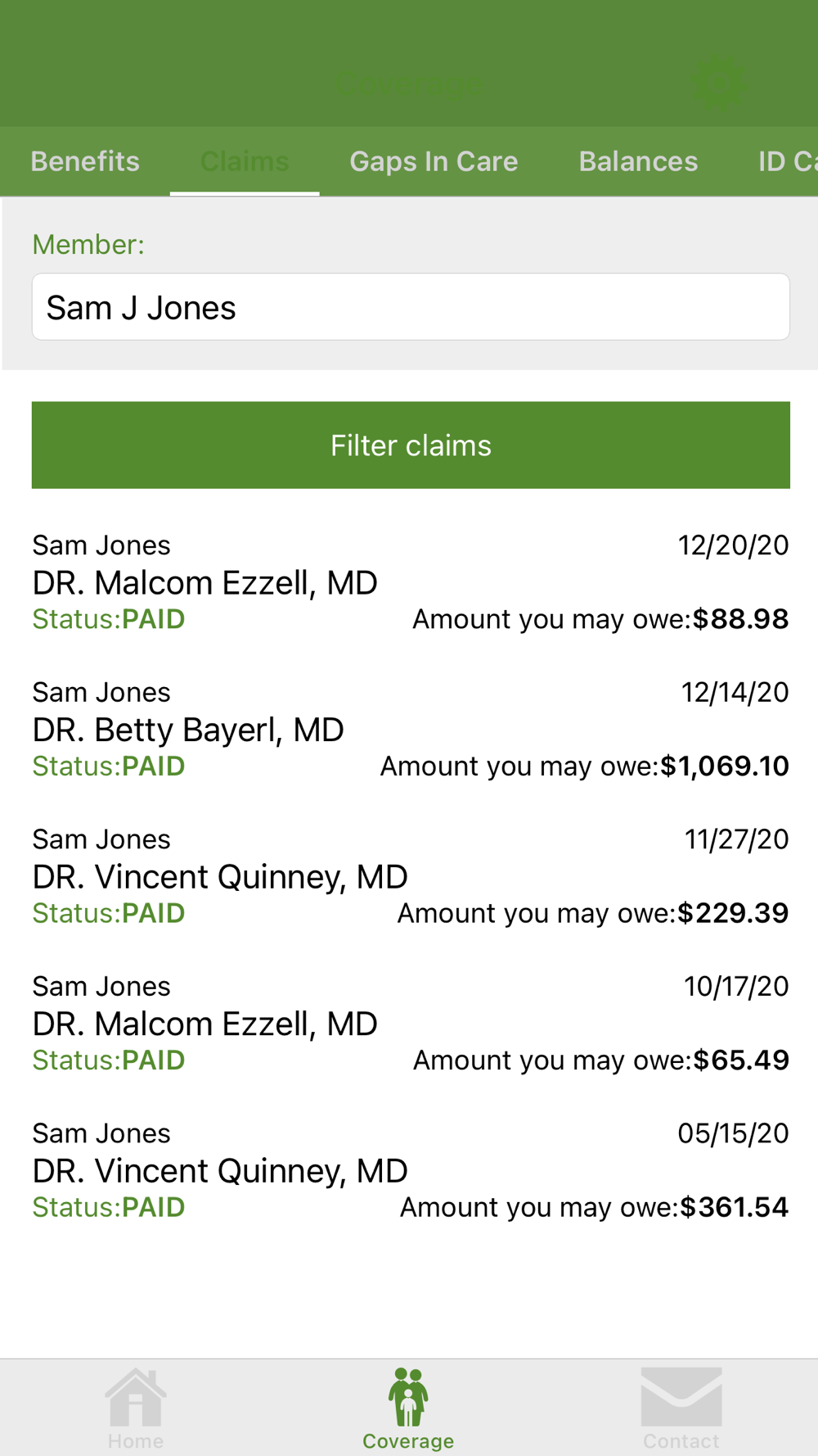 See your ten most recent claims. Get a detailed view of each one. Or look up specific medical, dental and pharmacy claims by member name.