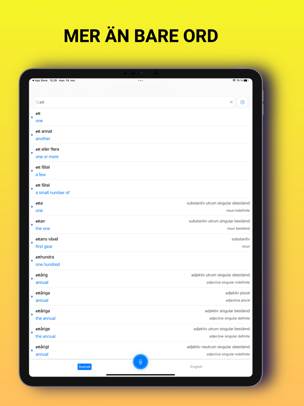 Ordböckerna är gratis för alla och finansieras genom annonsering i appen.