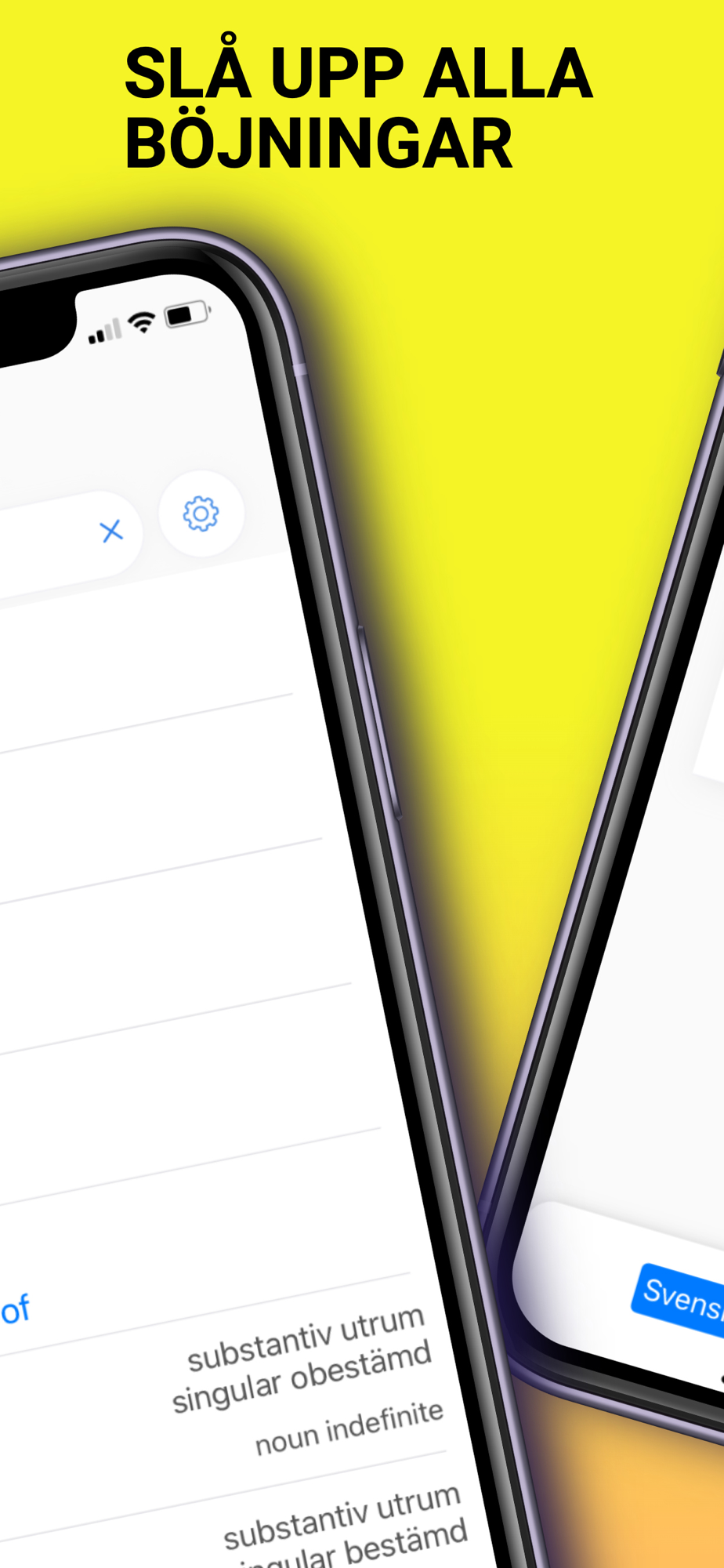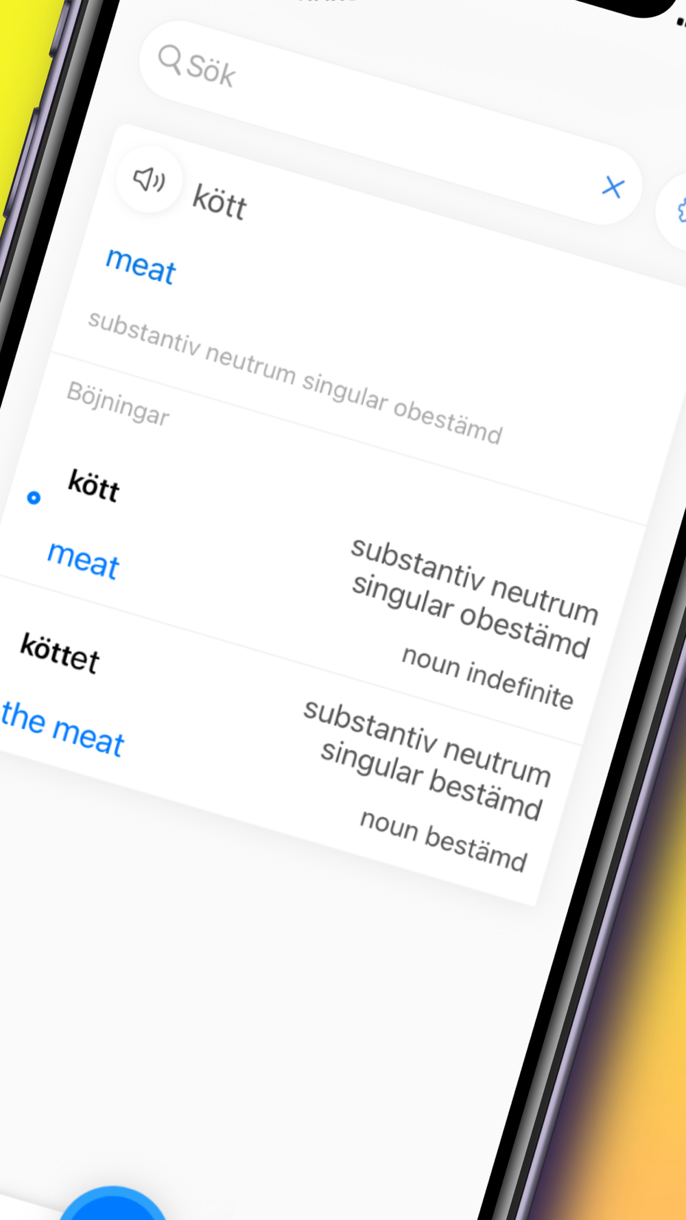 Du kan slå upp böjda former direkt utan att känna till ordets grundform.