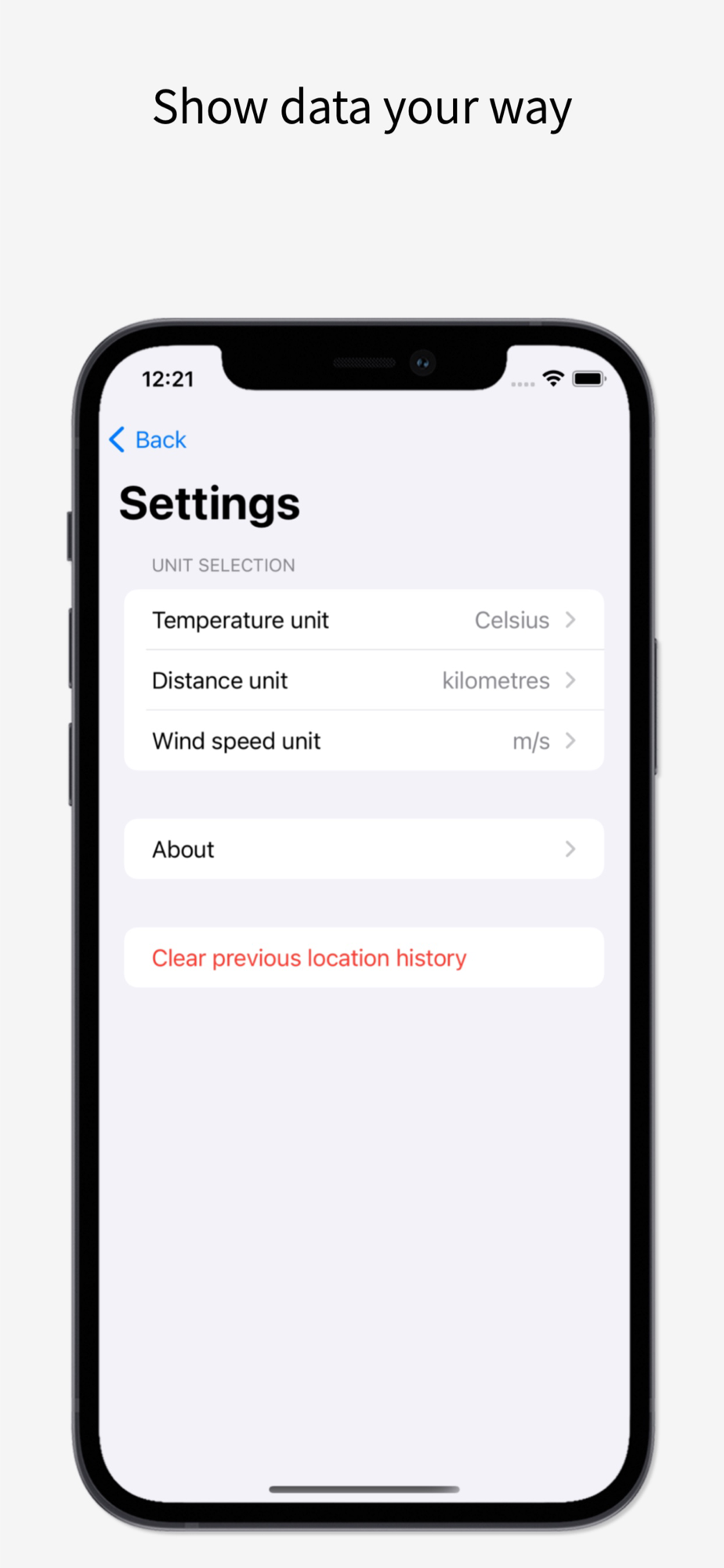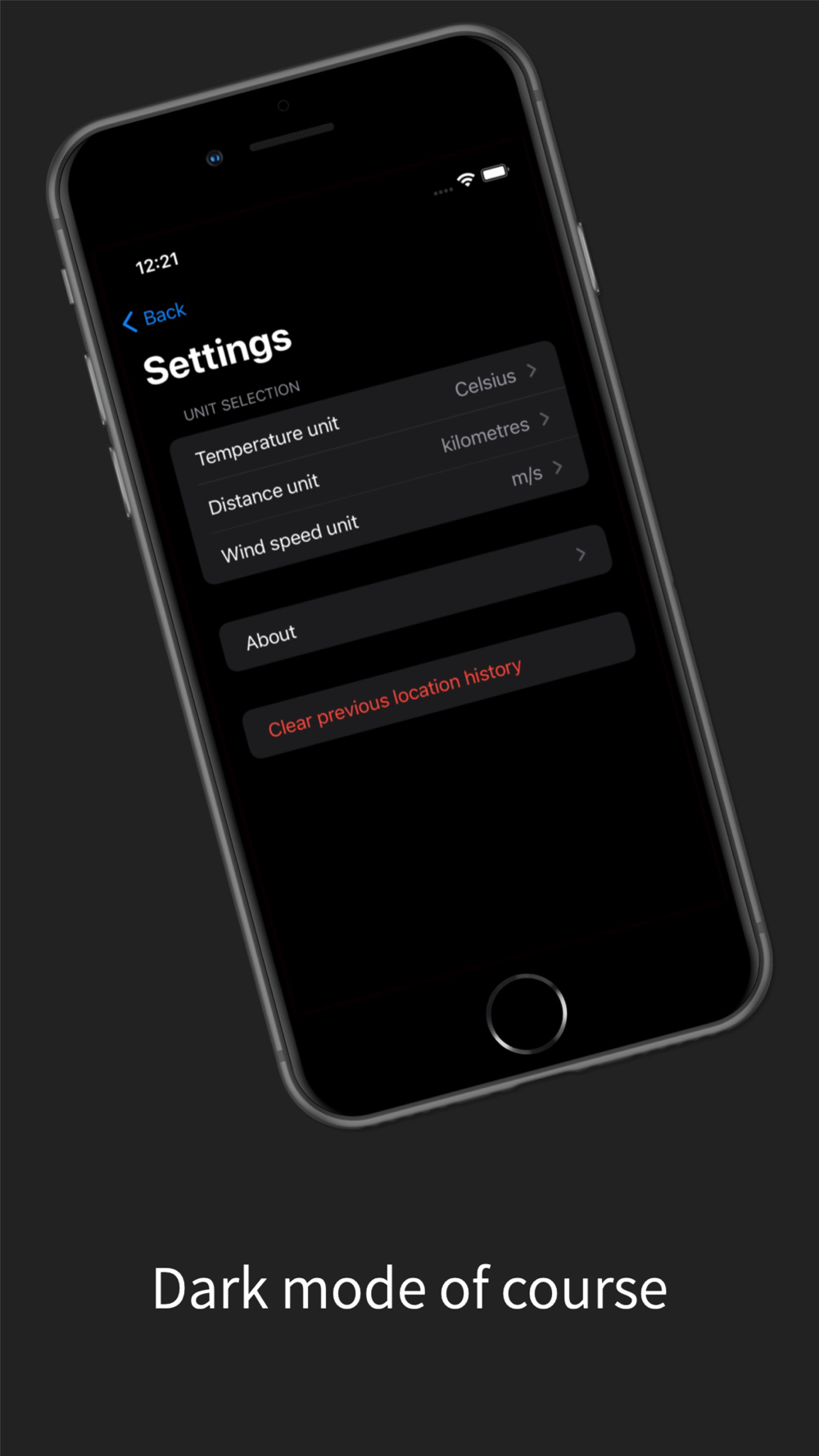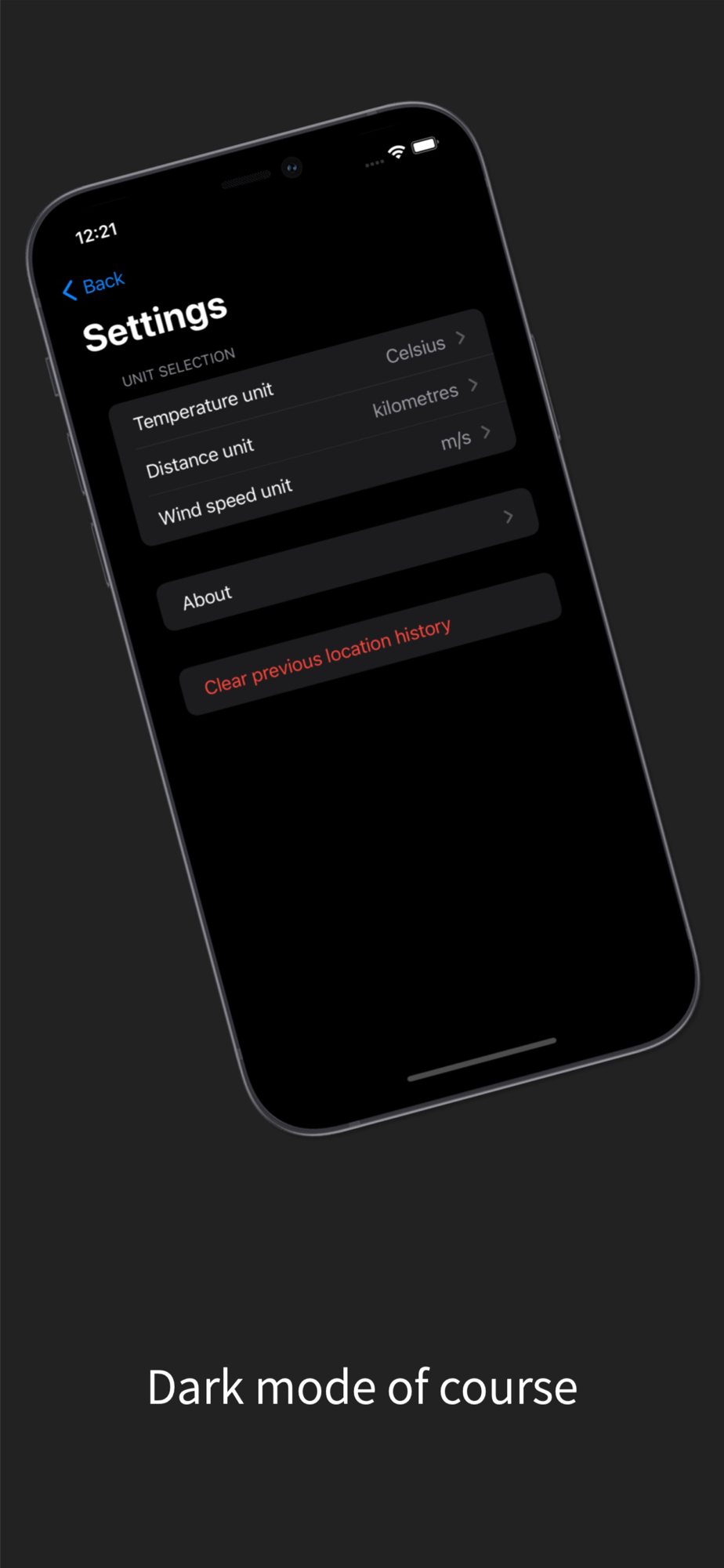 See things how you want including changing units and the app will automatically change with your system dark mode preference.