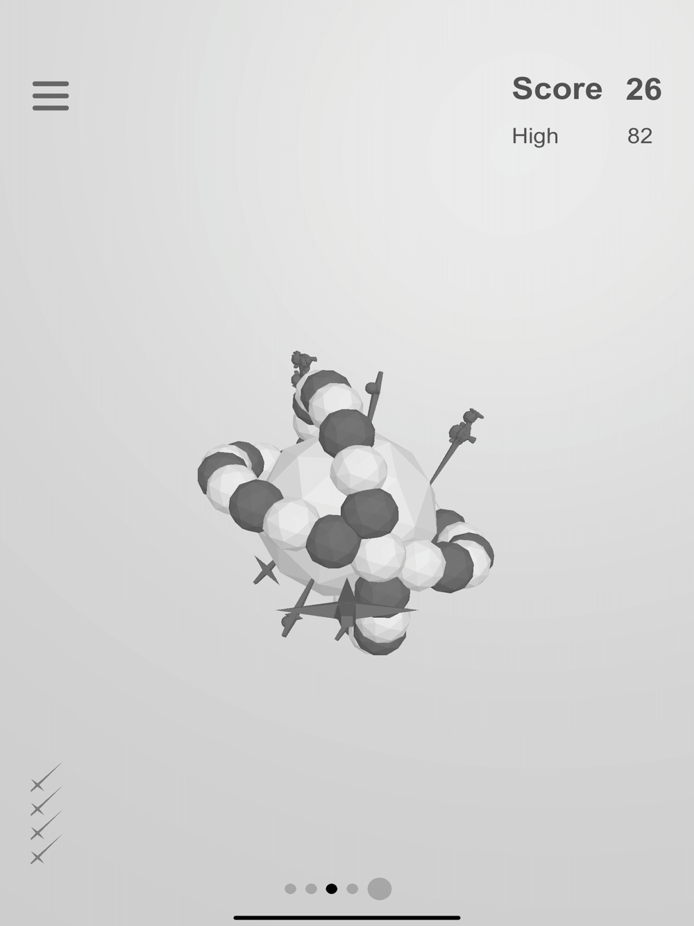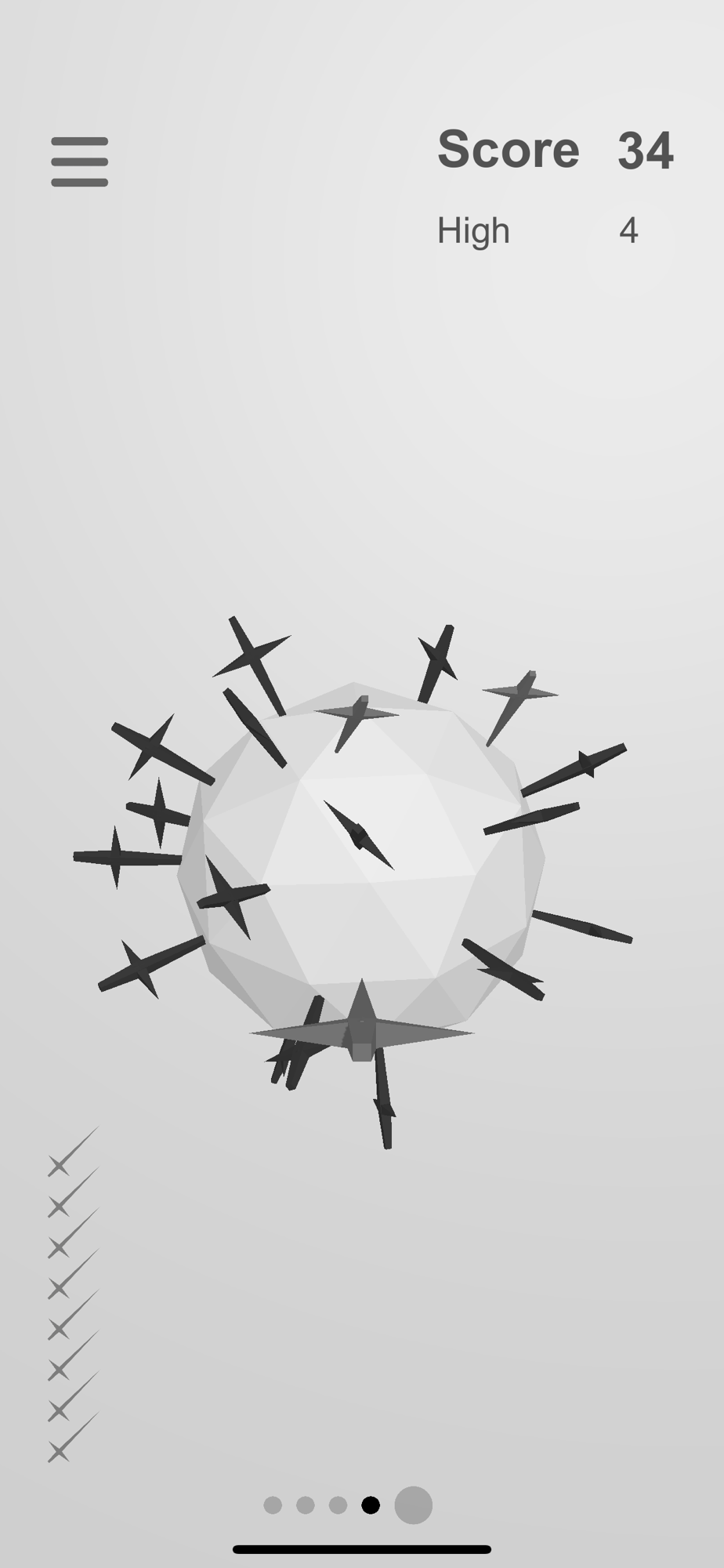 Throw blades at targets to earn points, targets rotate when you hit them. Avoid your own blades, try getting the green balls, don’t hit the red ones. Defeat bosses to unlock new blades.