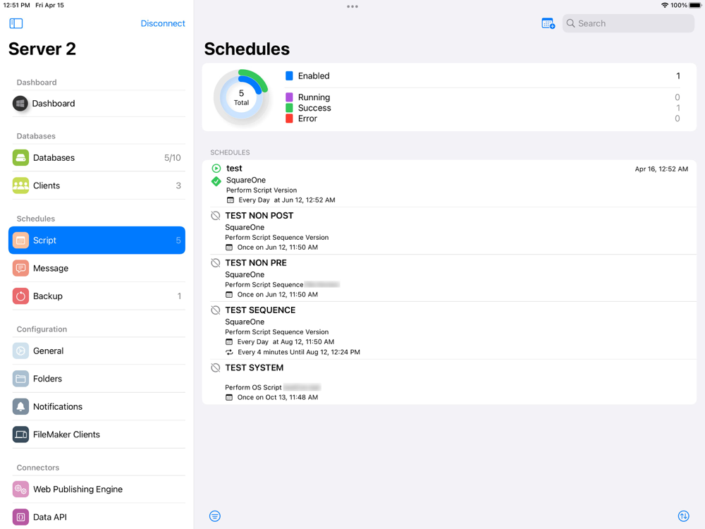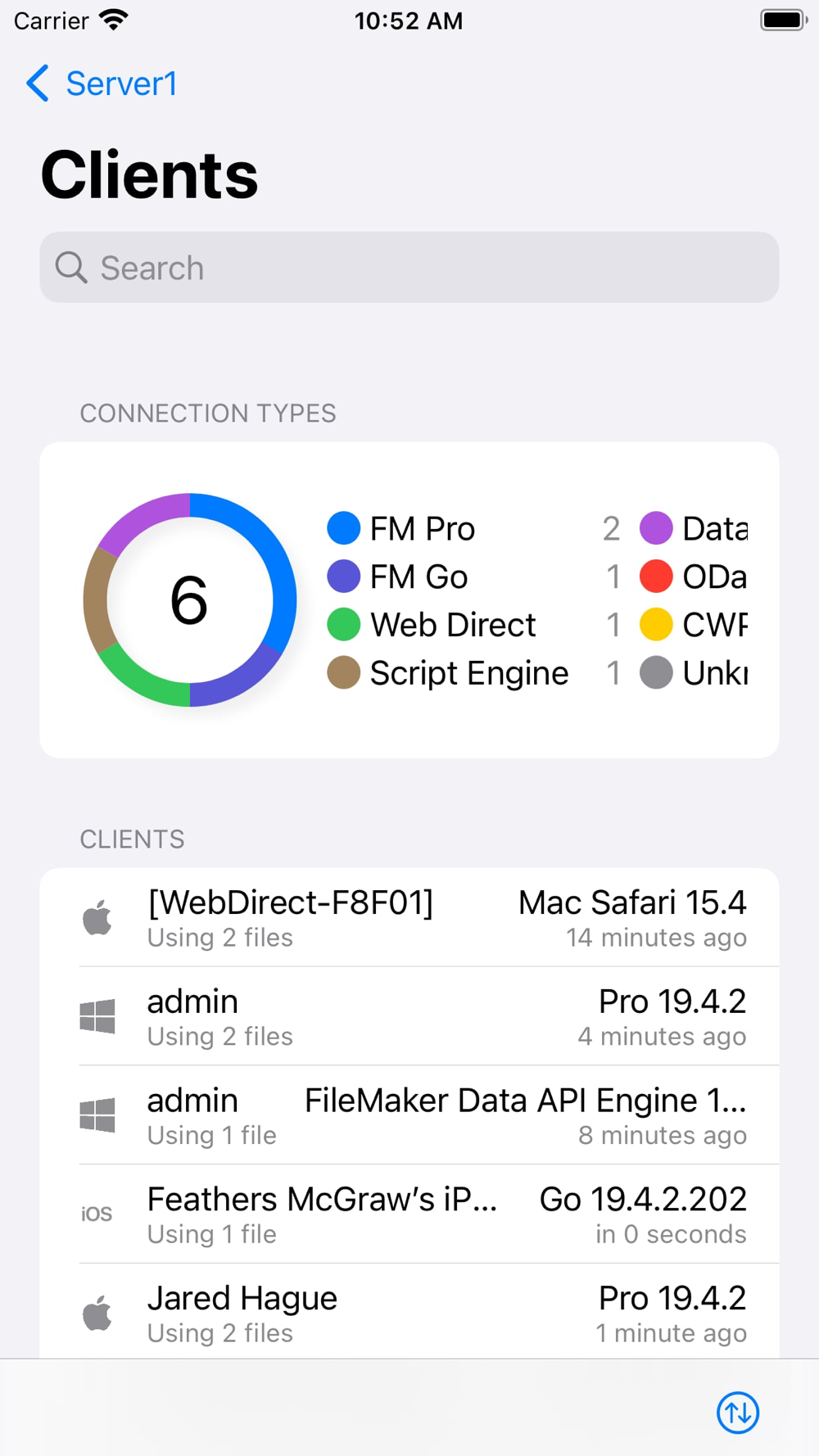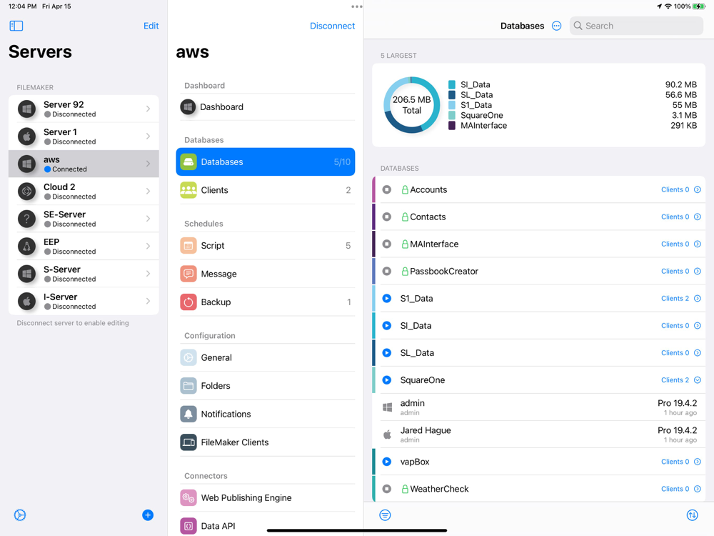 • Launch FileMaker Pro, Go or WebDirect directly from the database list.