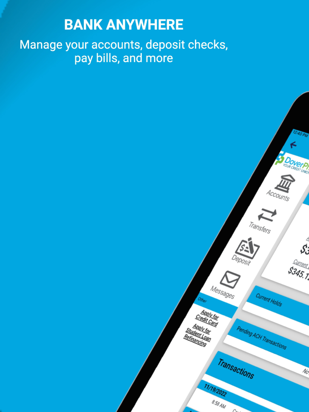The DoverPhila mobile app gives you convenient and secure account access from your mobile device - it's free, convenient, and secure! We've updated the look and feel of our app to bring you a brand new experience. You can check balances, view transactions, perform transfers within your DoverPhila accounts, deposit checks, view your statements, utilize debit card controls, and more with just a few taps. Quickly sign-in using facial recognition, fingerprint authentication, and/or a 4-digit passcode.