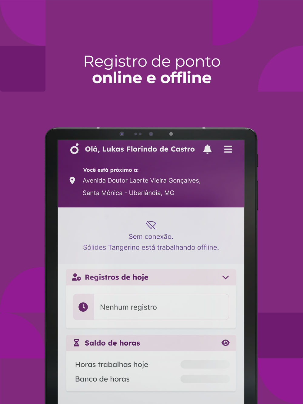 Para os momentos em que não houver conexão com a internet, o app permite o registro de ponto offline. Assim, quando não houver sinal, os colaboradores podem marcar o ponto normalmente, o sistema armazenará os dados e eles serão registrados assim que a conexão for estabelecida.