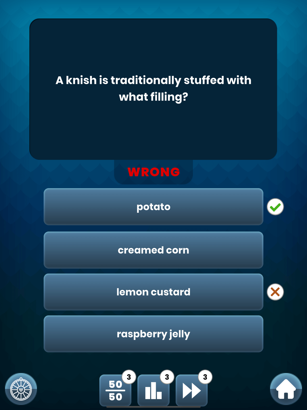 3.Skip (Player can skip current question and will be given new question.)