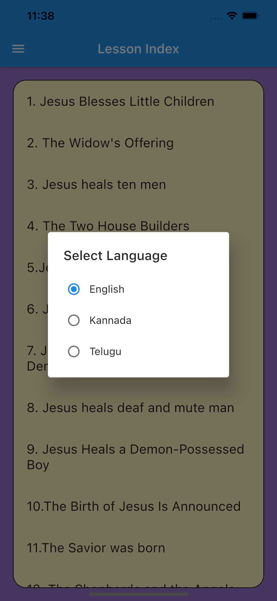 App Description: Activities for Sunday school children. This app brings 36 stories about our LORD Jesus Christ from the Bible along with fun filled activities like Quiz, Organising the jumbled memory verse and painting. This app is totally add free and available in English, Kannada and Telugu (other Indian languages coming soon...)