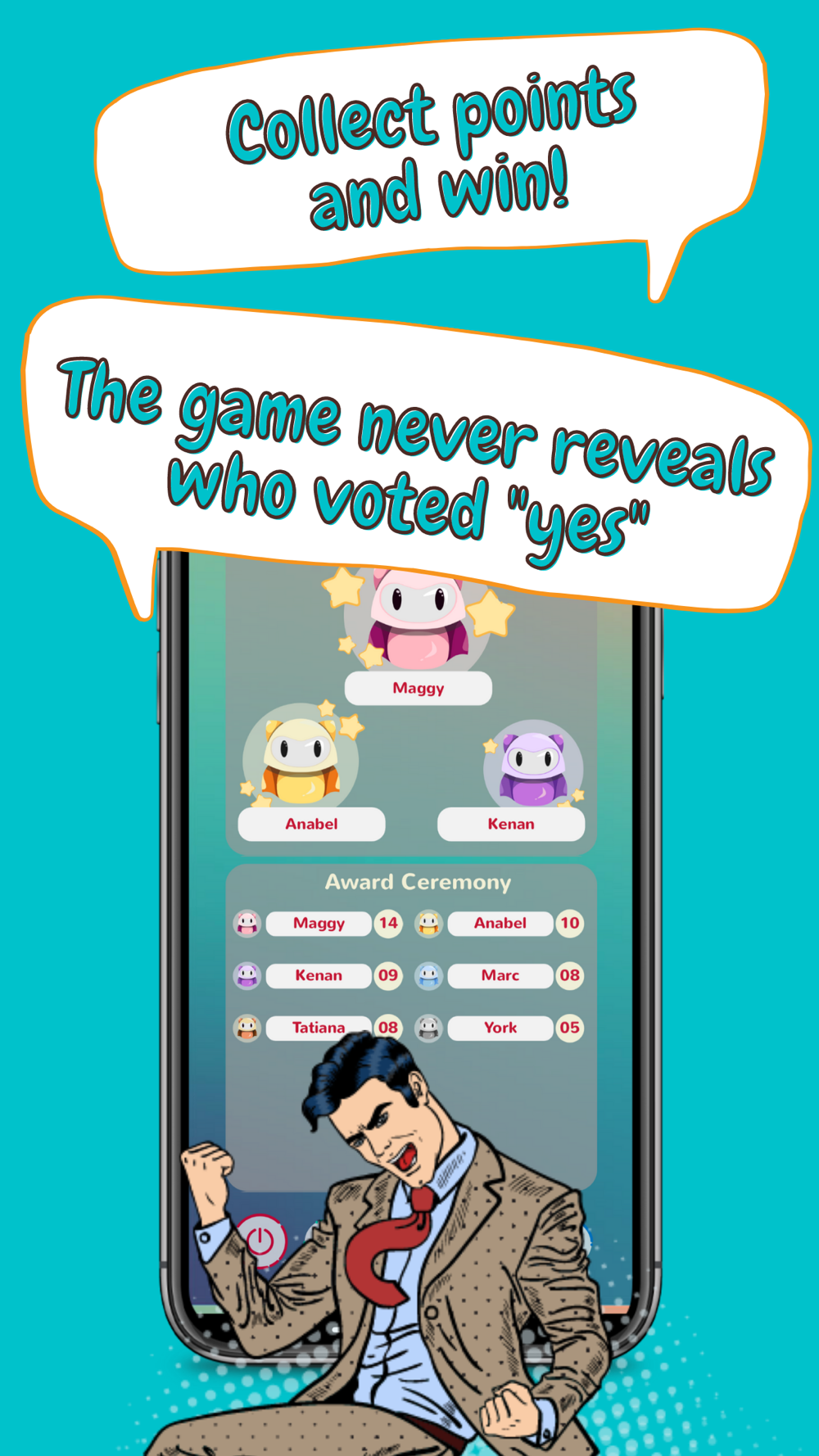At the end, the game reveals how many of you pressed yes. But never who exactly!