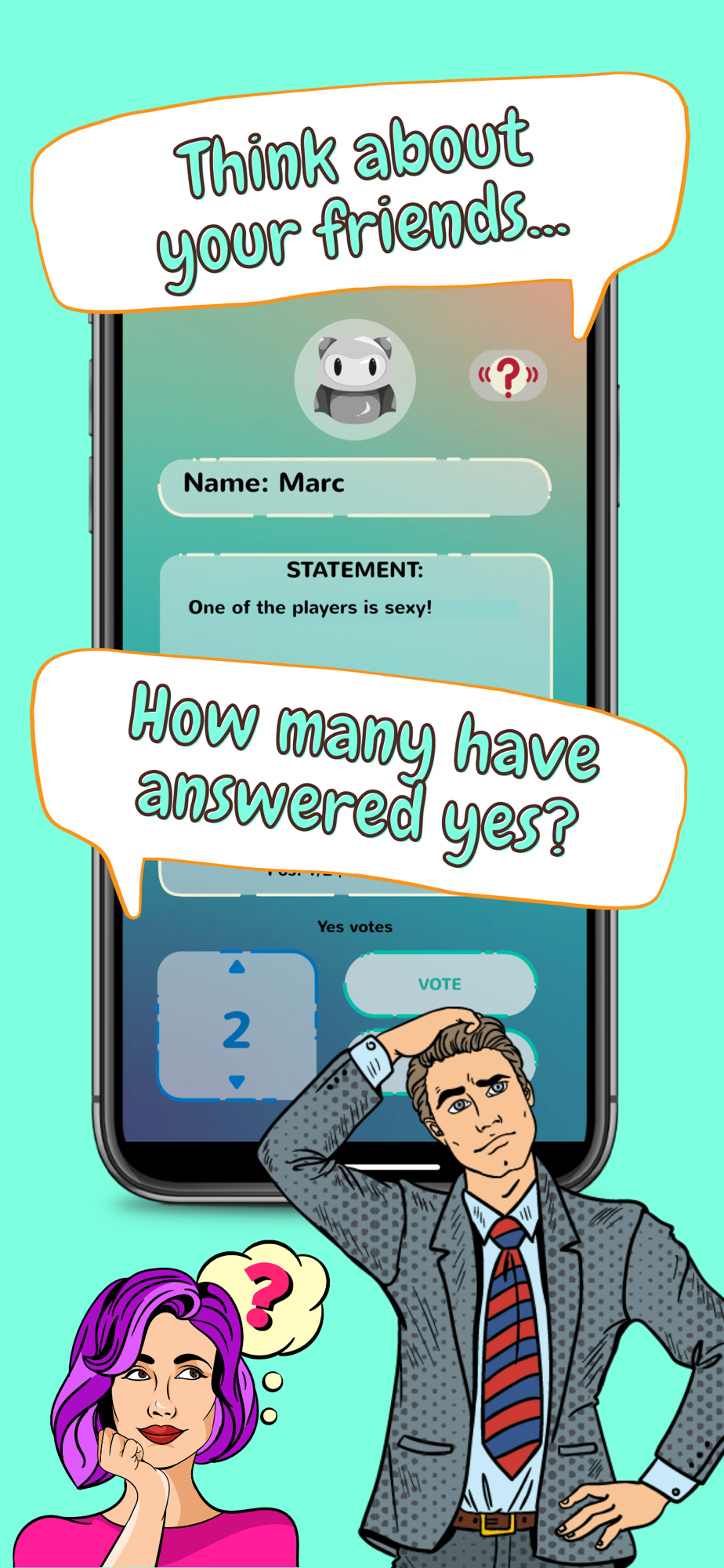 Then you secretly press Yes or No on your smartphone and then estimate how many of your friends have pressed Yes.