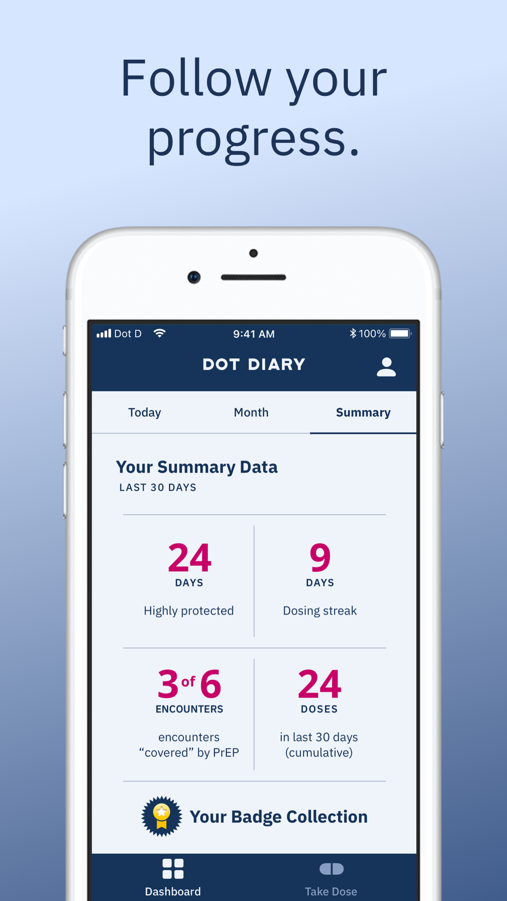 PCORI Dot Diary makes it easy to stay protected. Set pill reminders, track your pill-taking and get insights about your activity.