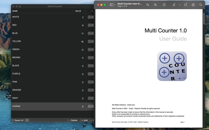 Multi Counter allows to count a discrete number of elements of different kinds creating multiple customizable counters inside a single window