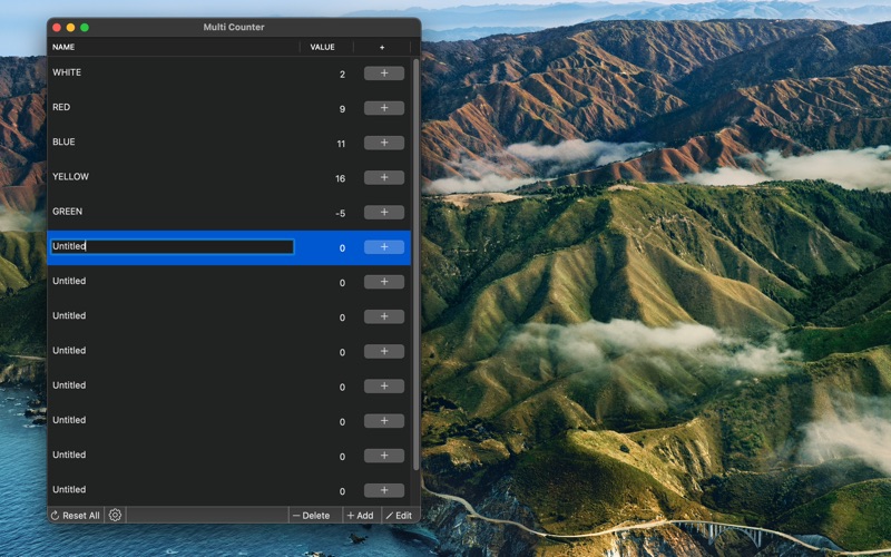 • To add or subtract a value to a counter simply click the + or - button in the relative row