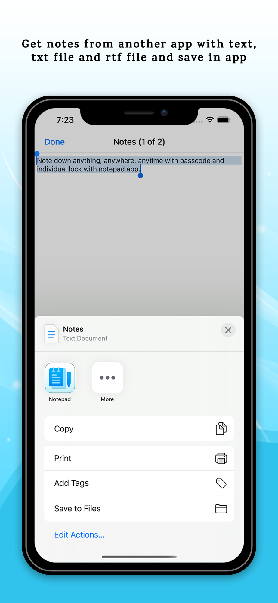 - Share note with text or pdf file
