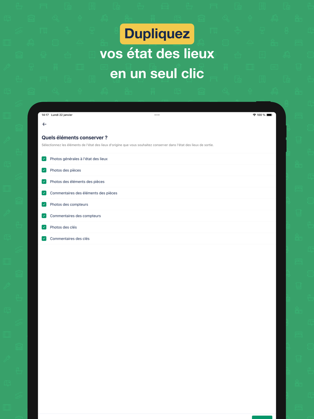 - Pré-remplir l'état des lieux de sortie en repartant de l'état des lieux d'entrée et ainsi gagner du temps.