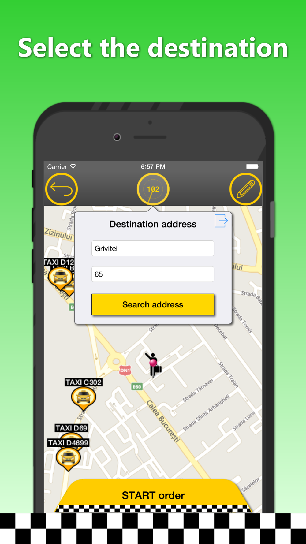 - The location of the terminal is automatic, for adjustment move the map so that the location for TAXI arrival is the desired place.