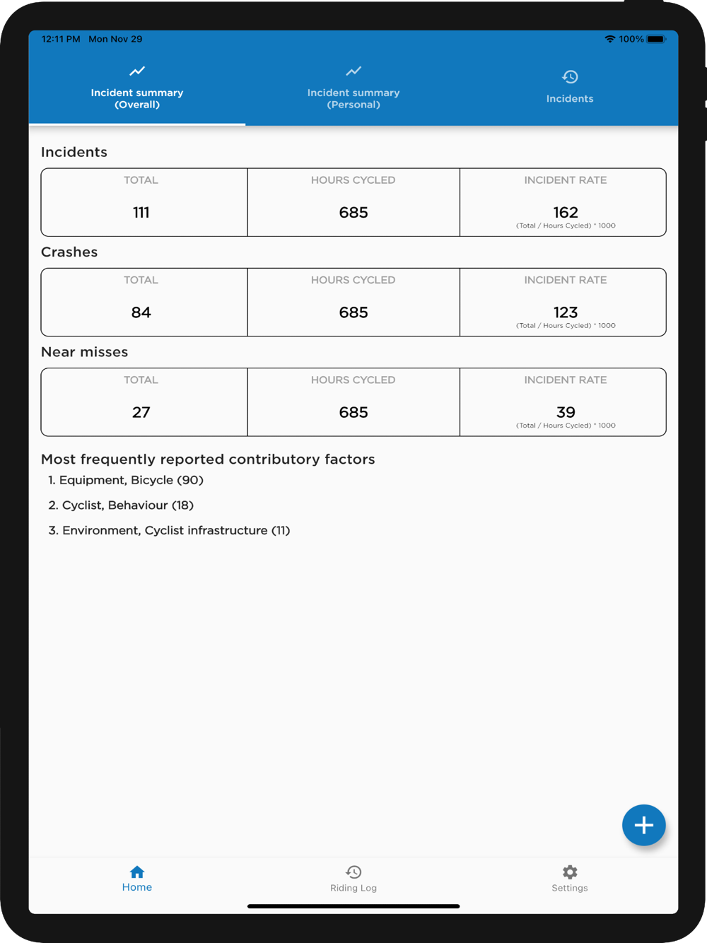 The Cyclist Reporting of Incidents Tool (CRIT) provides cyclists with a simple and quick way of reporting the crashes and near miss incidents that they experience whilst cycling, including important information regarding the incidents themselves (e.g. time and location, incident description) and the contributory factors involved.