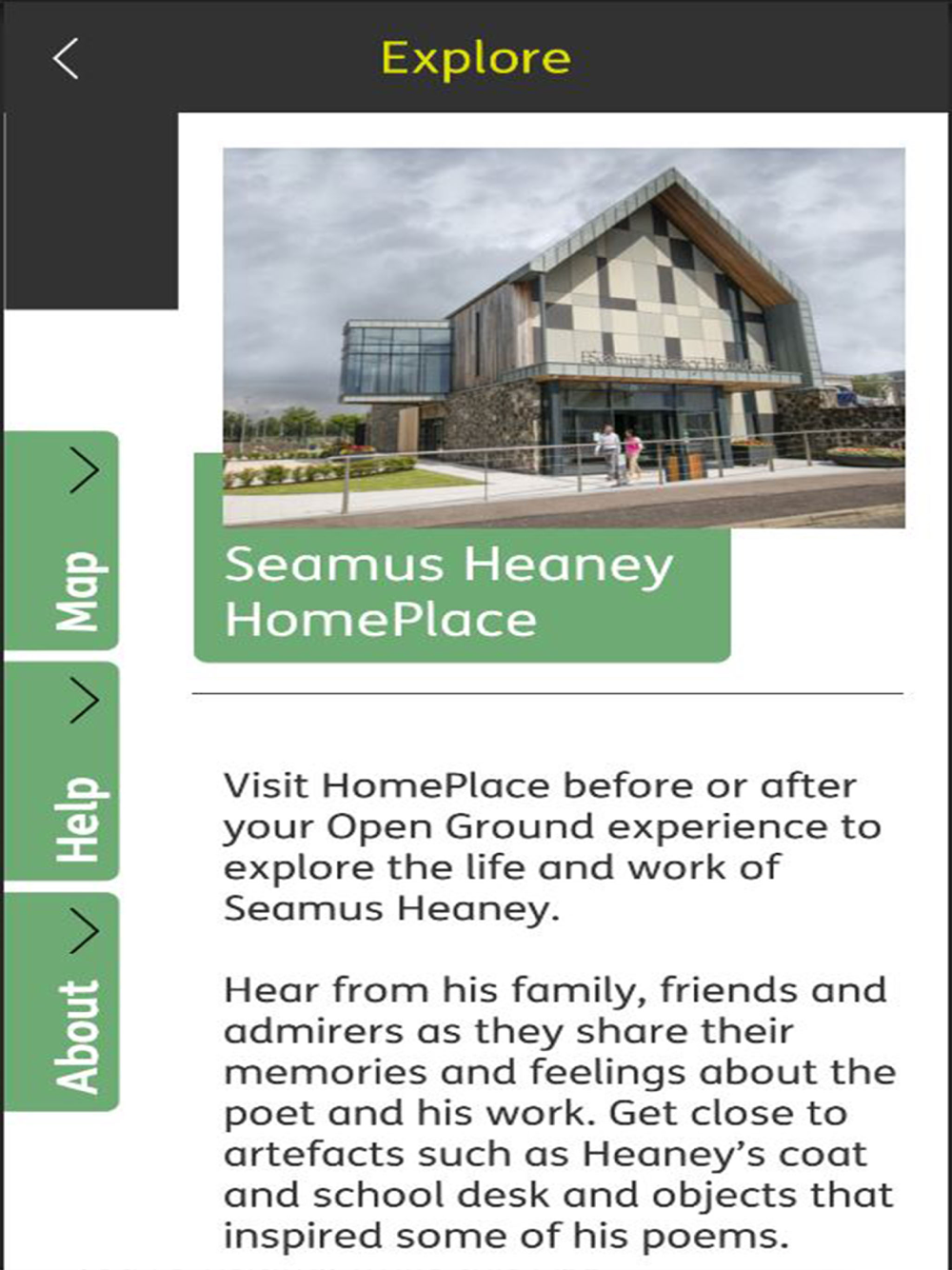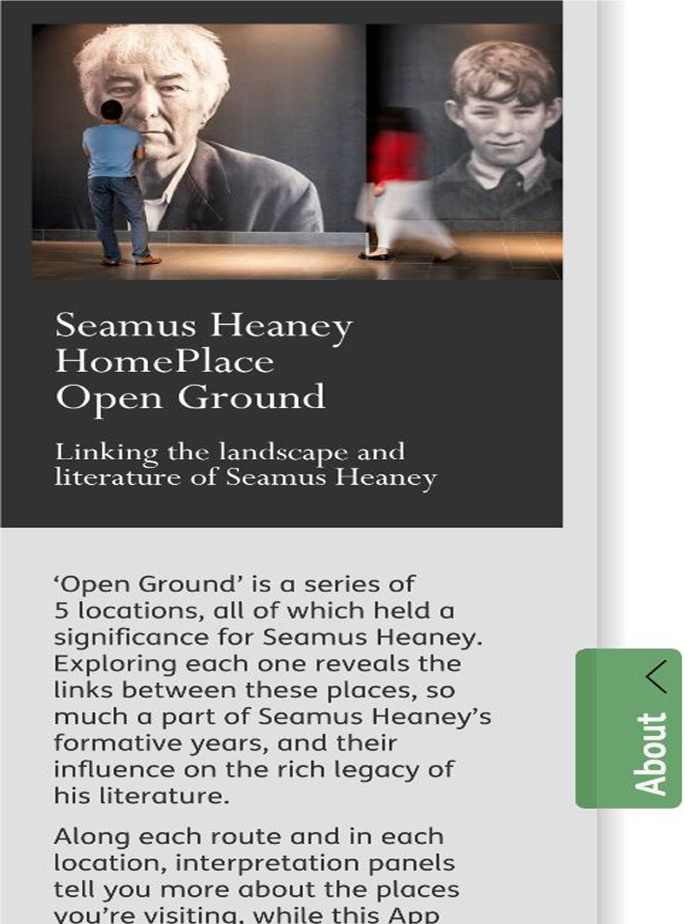 Open Ground is a series of 5 locations, all of which held a significance for Seamus Heaney.