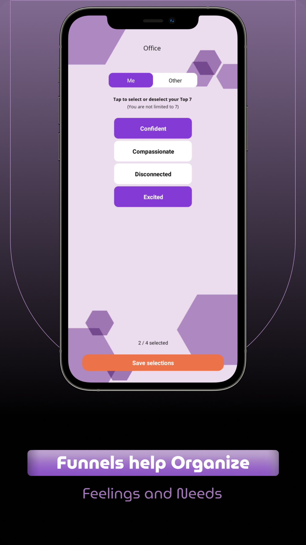 - Ability to prioritize initial saved selections of feelings and needs in the funnel feature.