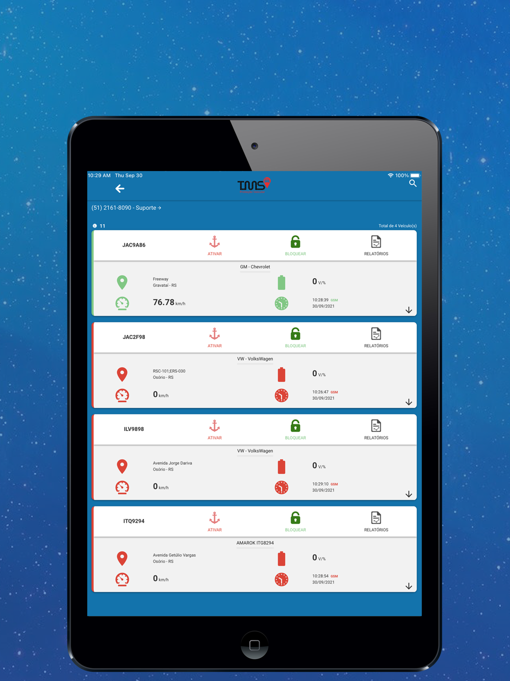 O Aplicativo TMS foi criado para dar mobilidade ao rastreamento veicular, mostrando os veículos rastreados pelo sistema.
